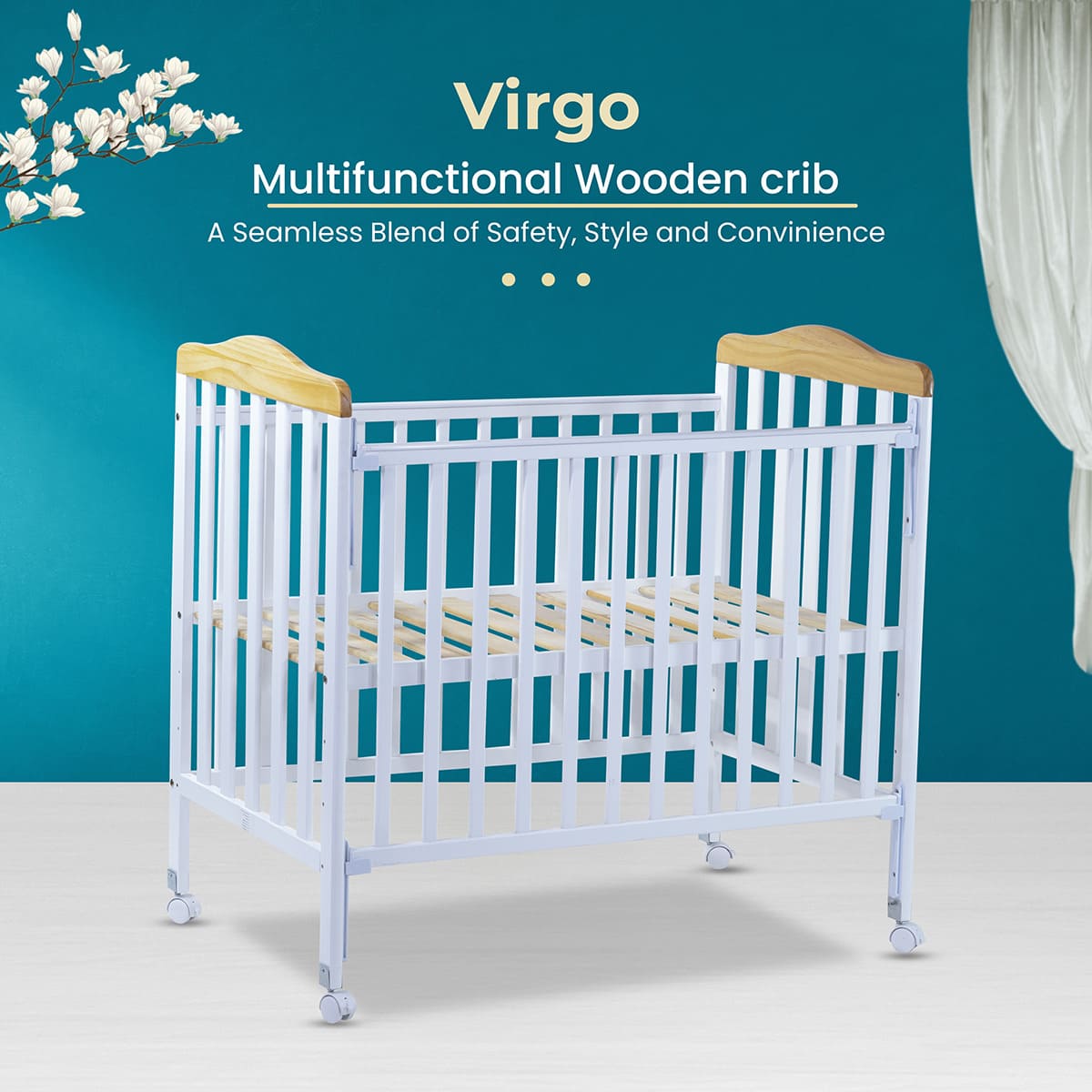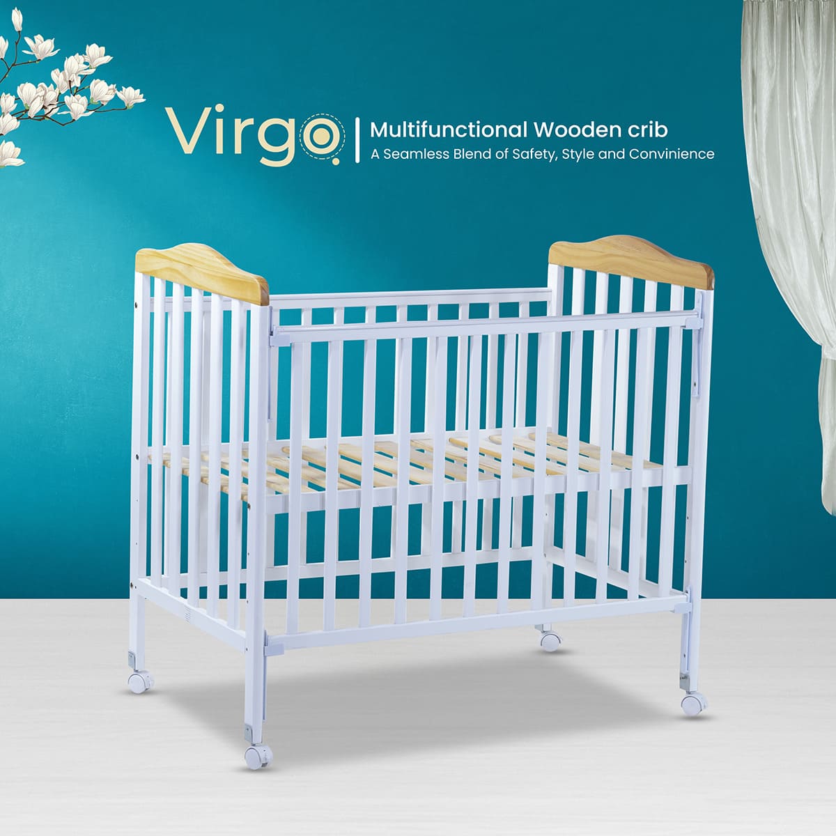 StarAndDaisy Virgo Premium Baby Cot Bed with Multiple Height Adjustment (With Mattress)