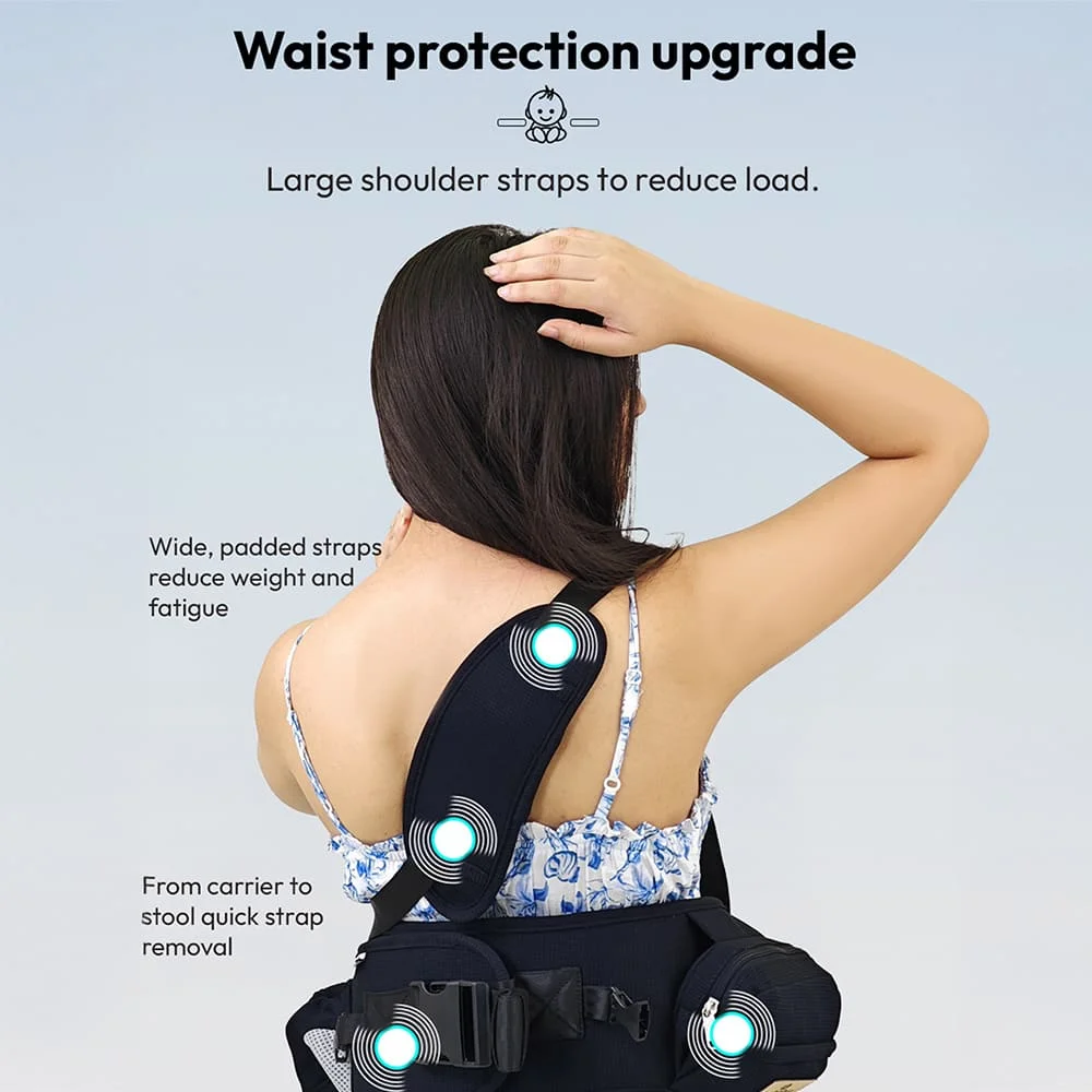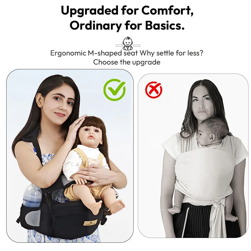 - Ergonomic M-shaped posture – Protects baby’s hips and joints.