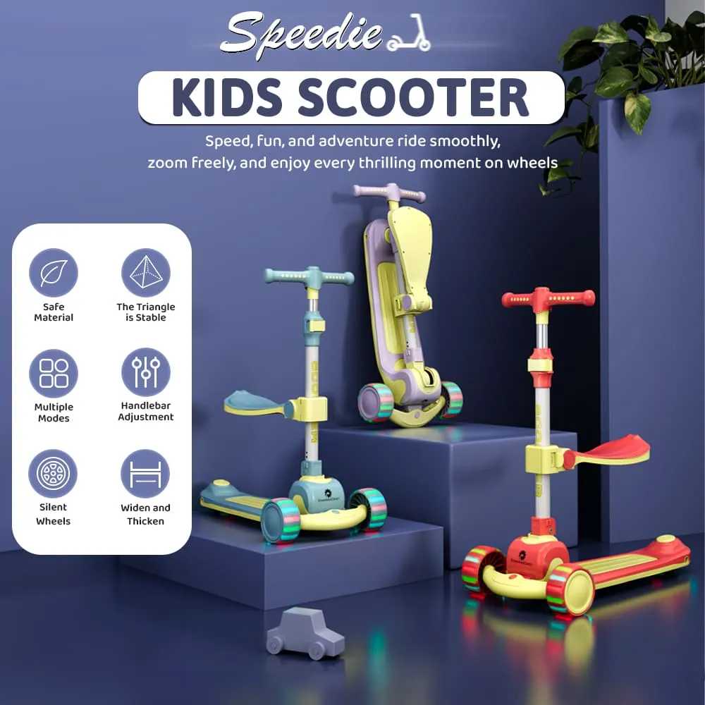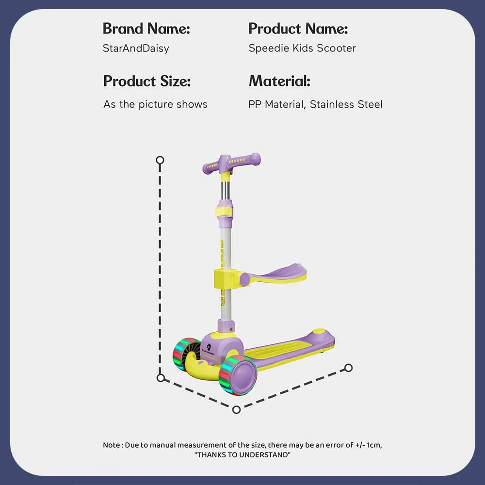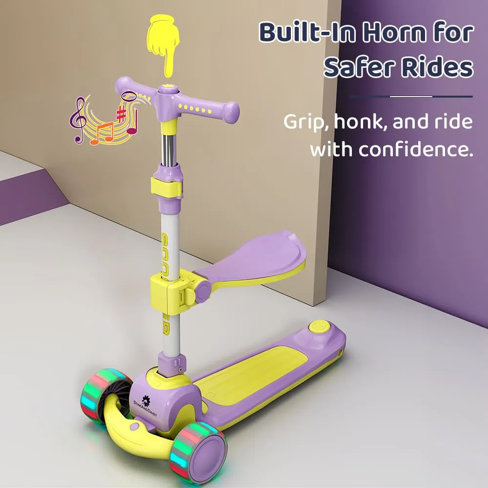 StarAndDaisy 3 Wheel Scooter for Kids with Seat, Height Adjustment & Foot Brake, RGB Wheel Lights Scooter for Kids – (Purple & Yellow)