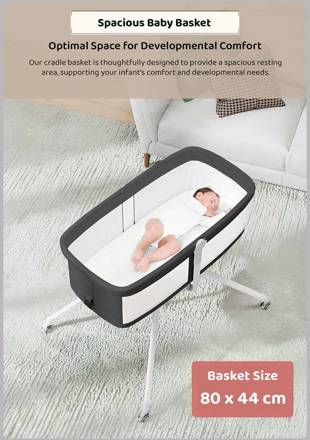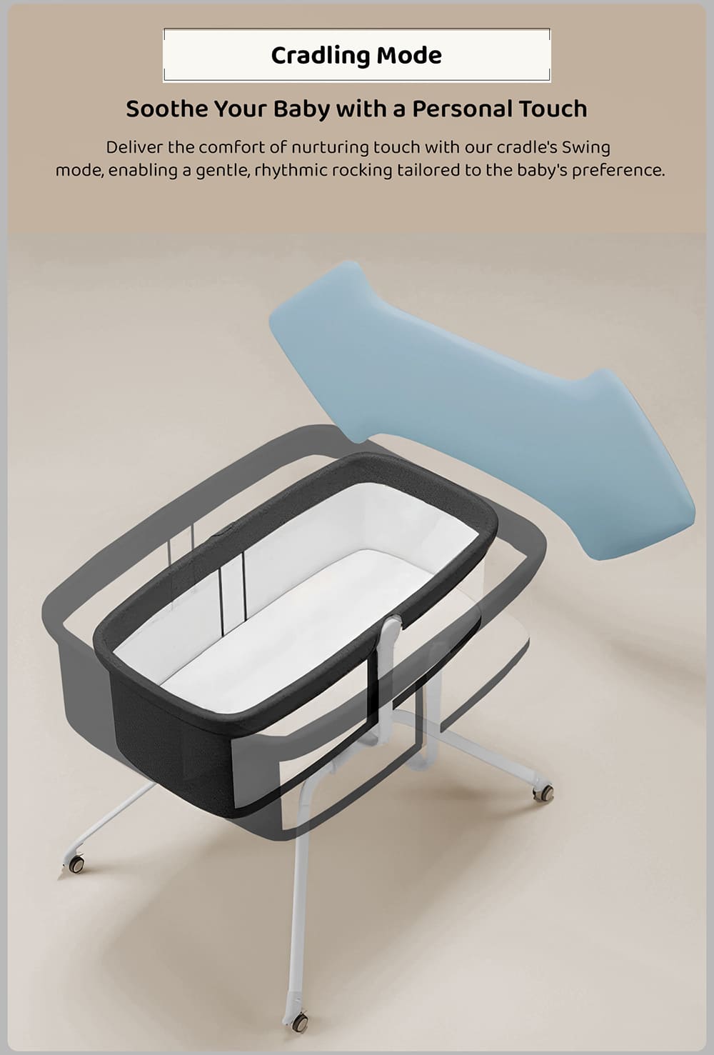 - Innovative Rocking System: The even rocking rhythm recalls the time in the mother’s belly in the child’s memory. The lock lever allows you to stop and stabilize the cradle for the baby with the baby inside
