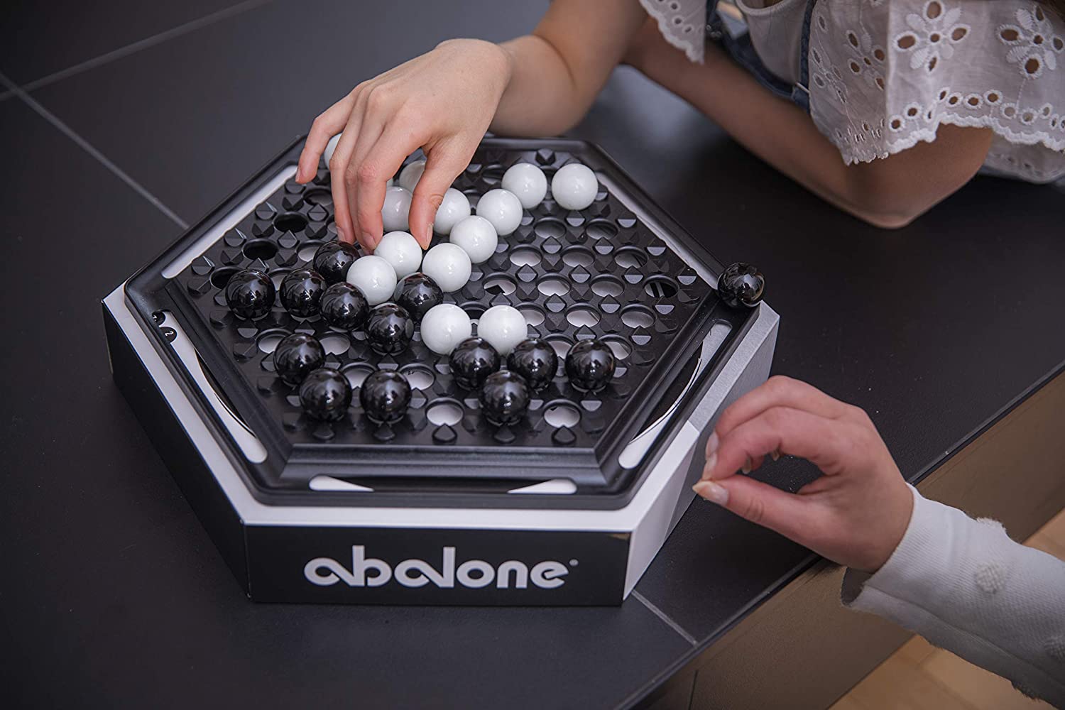 Abalone is a two-player strategy game designed by Michel Lalet and Laurent Levi in 1987, in which each player controls opposite color marbles on a hexagonal board. The aim of the game is to take the board six channels of the opponent. The board is formed by 61 circular holes, distributed hexagonally. Each player has 14 gaps that fit into the gaps and begins the game distributed on its side of the board, according to the initial setup shown in the rules. The game is developed by alternating Turns between the players, starting the black game. The game ends when a player is able to eject the board 6 channels of the opponent.