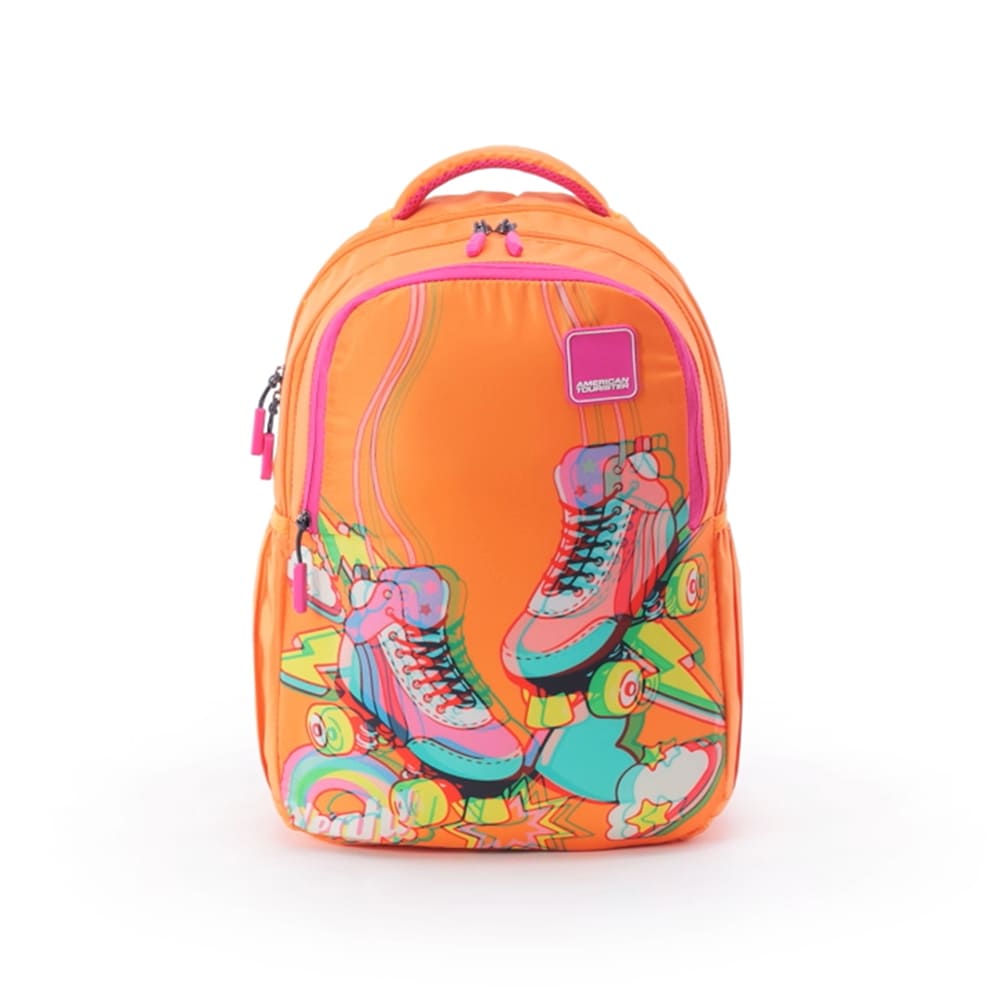 American Tourister Trendy School Bags With Name, Cute Adorable Printed Backpack – Ollie 3.0 Glyph Orange