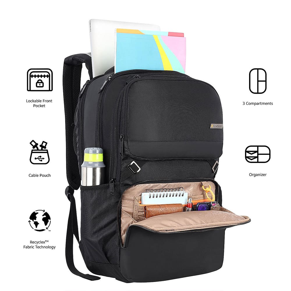 American Tourister Kids Backpacks For Students With Lockable Laptop Compartment, 34 Ltrs Bags – Segno Detachable Black