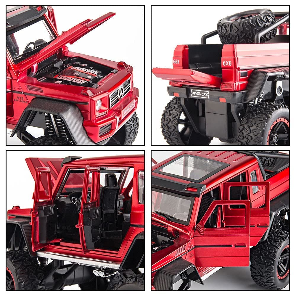 Auto Toy Car for Kids – Diecast Exclusive Metal Pull Back Car Scale Model with Sound & Light, Mini Auto Toys for Kids (1:24 AMG 6×6 – Red)