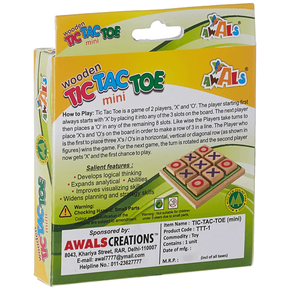 Awals Wooden Tic Tac Toe is a classic two-player game played on a 3×3 grid. The game is also known as Noughts and Crosses or Xs and Os. Each player takes turns marking an empty square with their symbol, either X or O. The player who succeeds in placing three of their marks in a horizontal, vertical, or diagonal row wins the game. If all nine squares are filled without either player achieving three in a row, the game is a draw.
