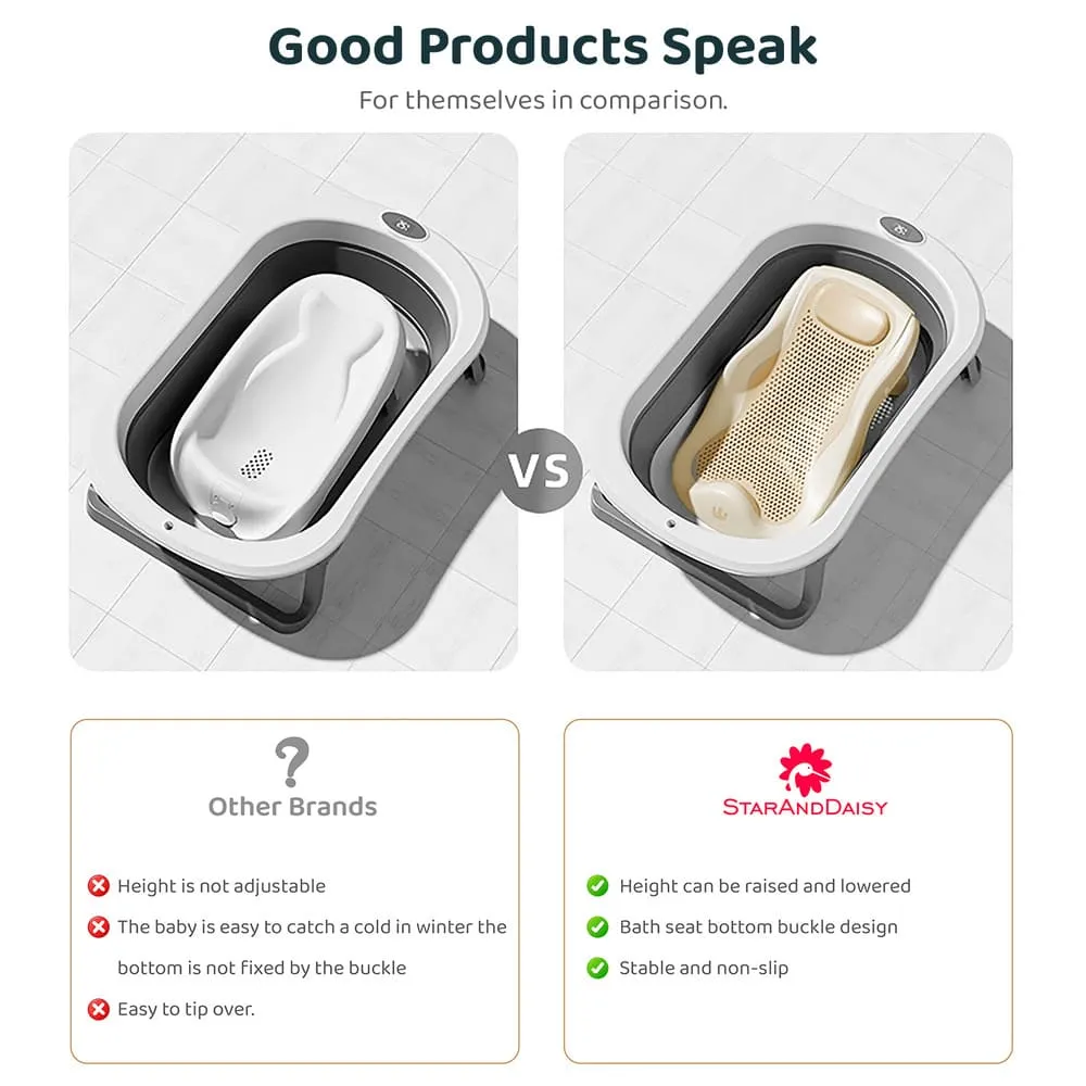 StarAndDaisy Baby Bather Seat – Anti-Slip Bathtub and Bathing Chair for 0-1 Year Upgraded Design for Babies – Beige