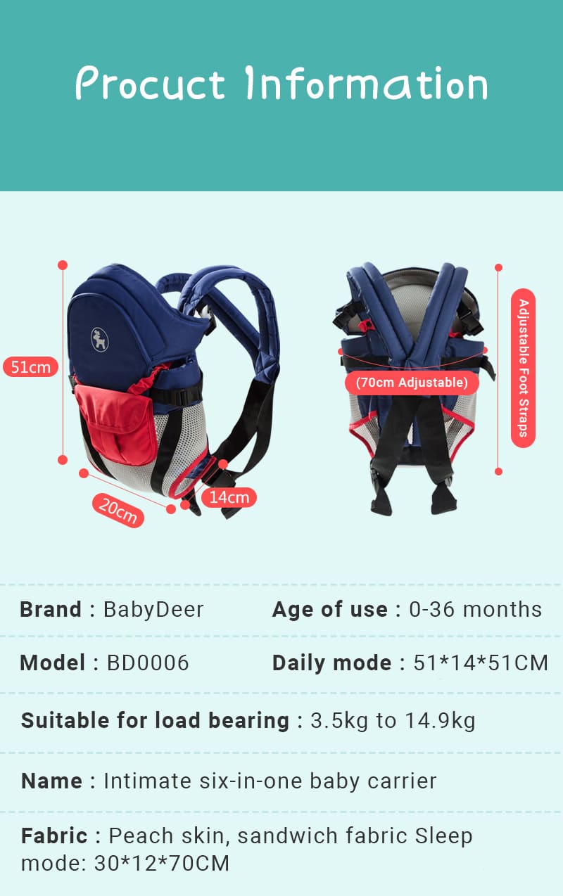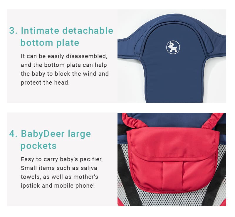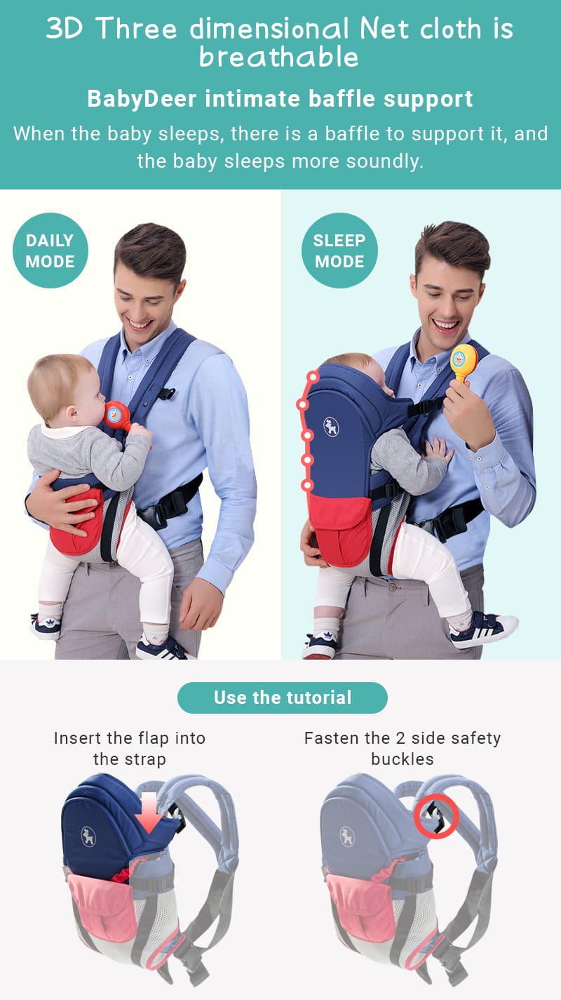 Baby Deer 4 in 1 Multipurpose Strong Baby Carrier with Coushion Padding for Baby Comfort Front Carry Facing in and Out, Back Carry, Feeding Position (Blue & Pink)