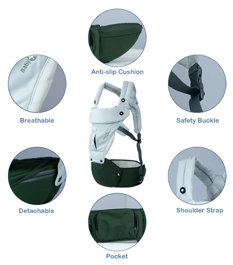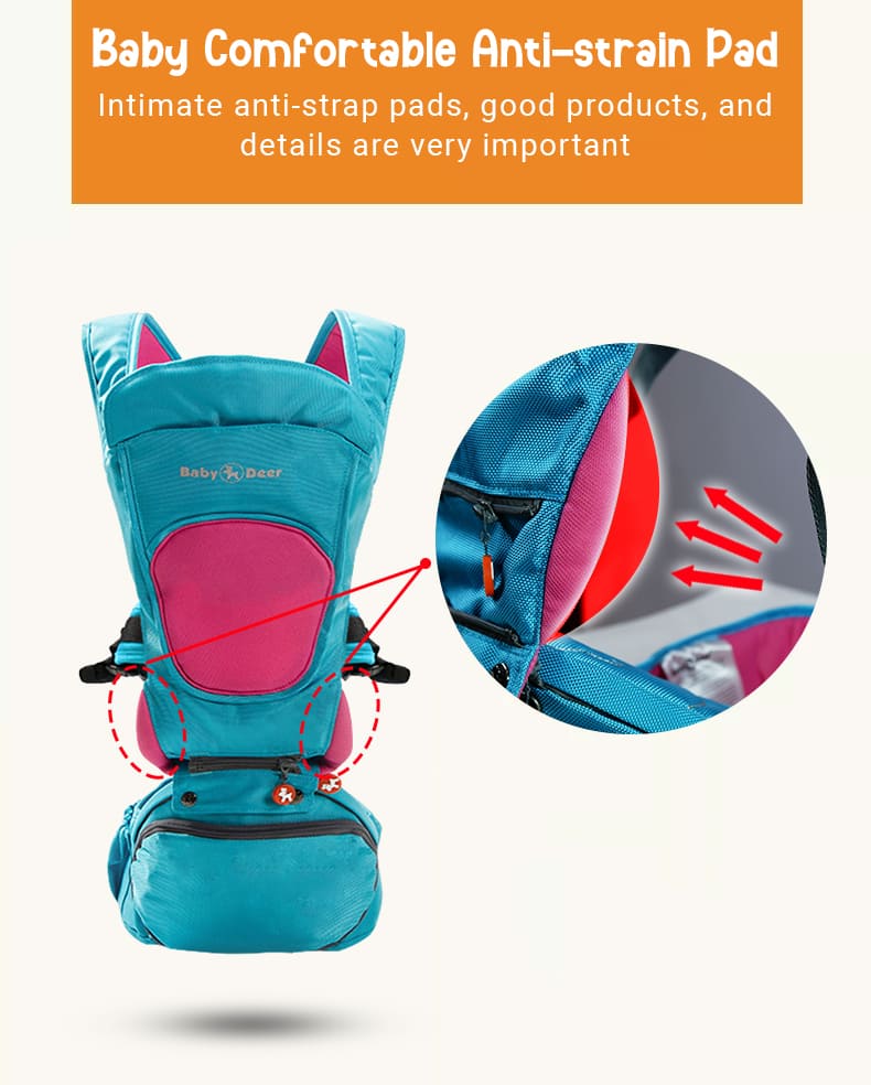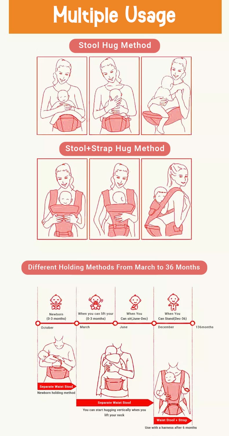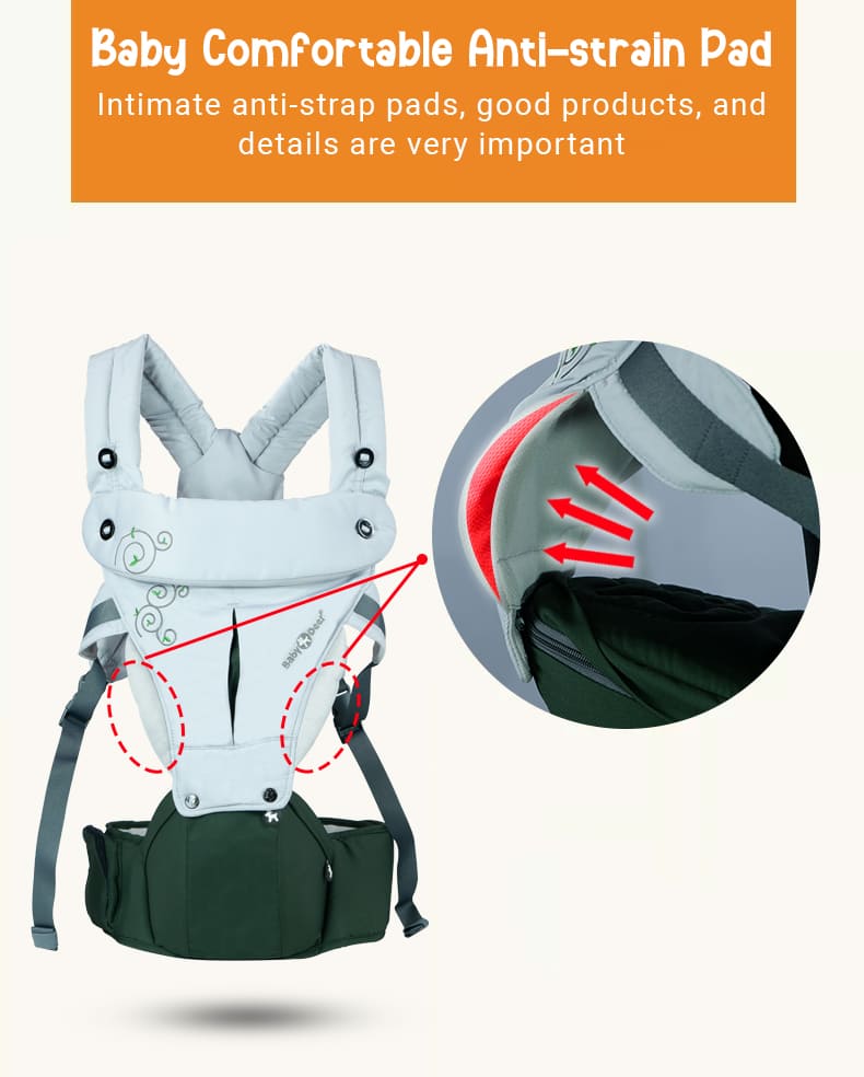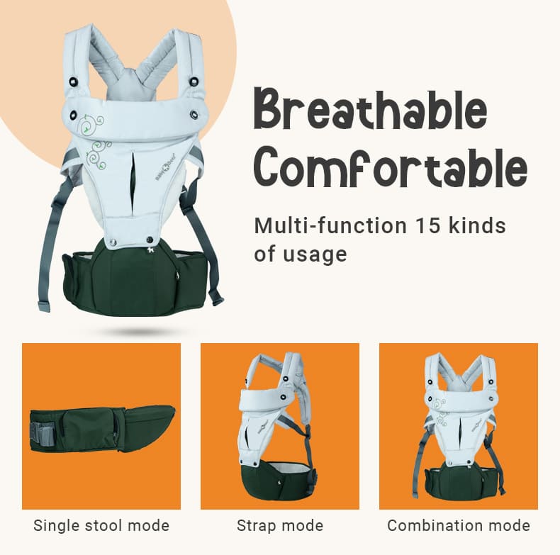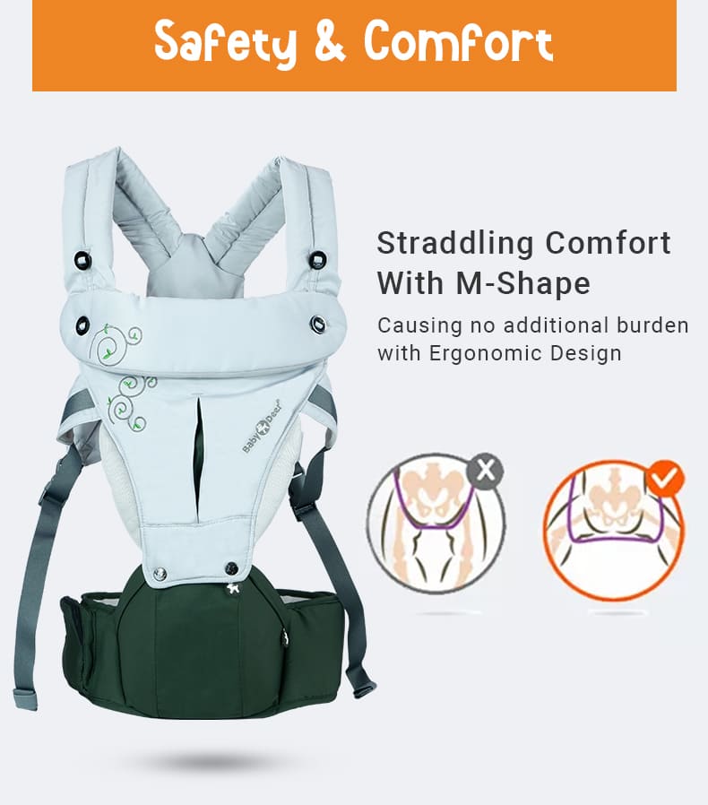 Baby Deer 6 in 1 Multipurpose Strong Baby Carrier with Upgraded Breathable Air Fabric & Ergonomic Design Coushion Padding for Baby Comfort (Grey & Orange)