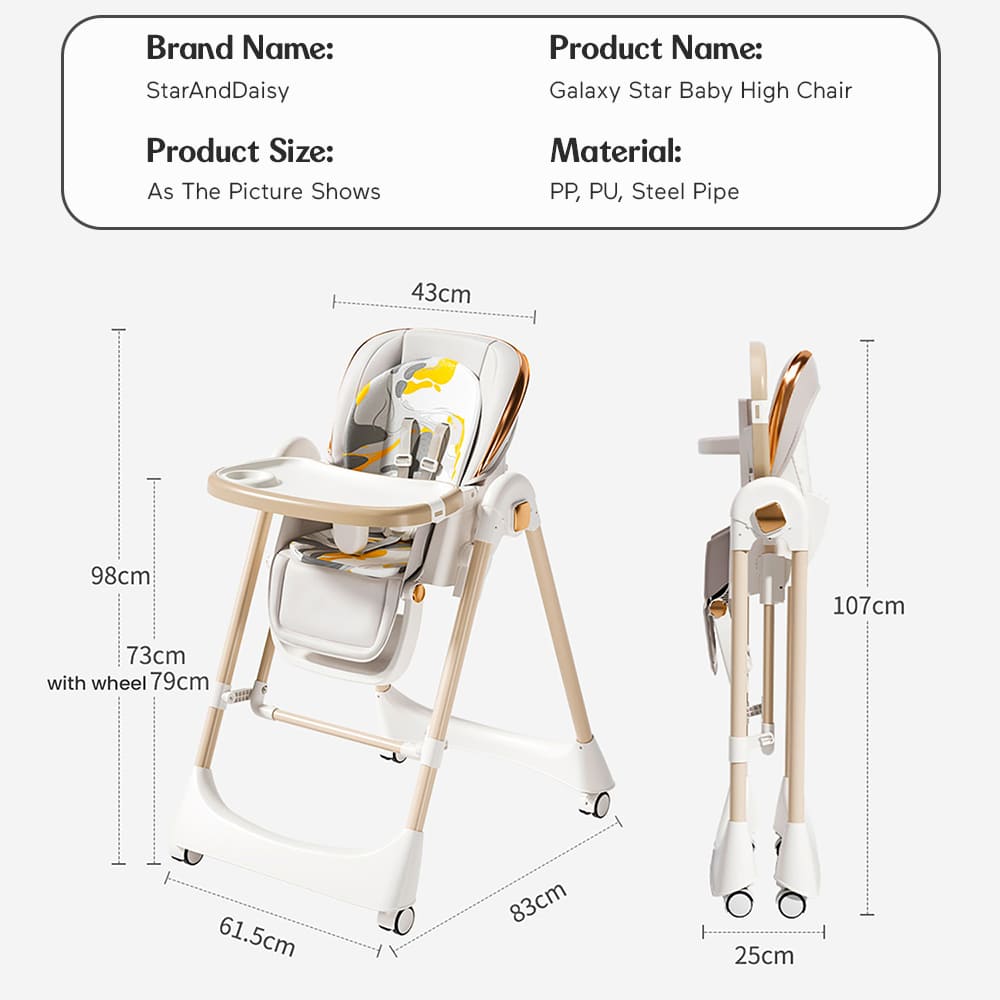 StarAndDaisy 2-in-1 High Chair for Baby, Foldable Feeding Chair for Babies with Height Adjustment, Dining Chair for Baby – Grey