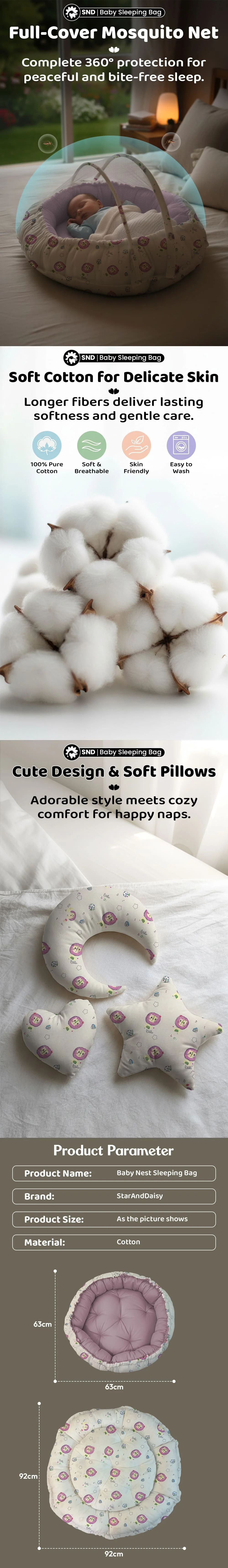 StarAndDaisy Baby Nest Round Shaped Newborn Bed with Mosquito Net, Portable Baby Lounger for Safe and Comfortable Sleep – Pink