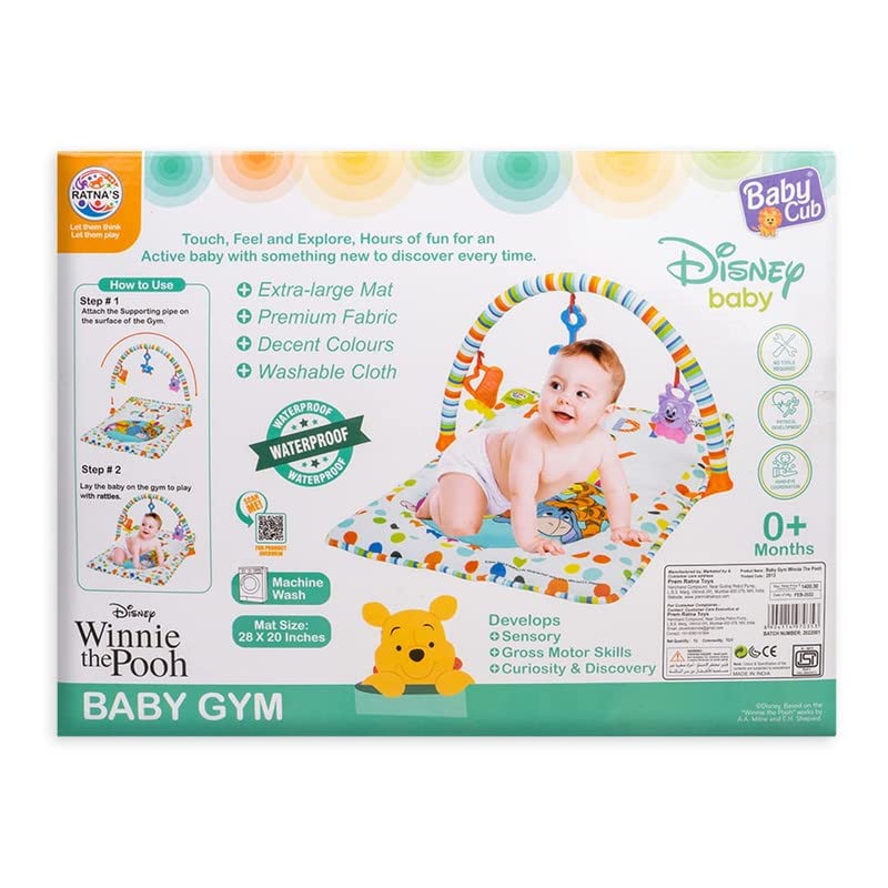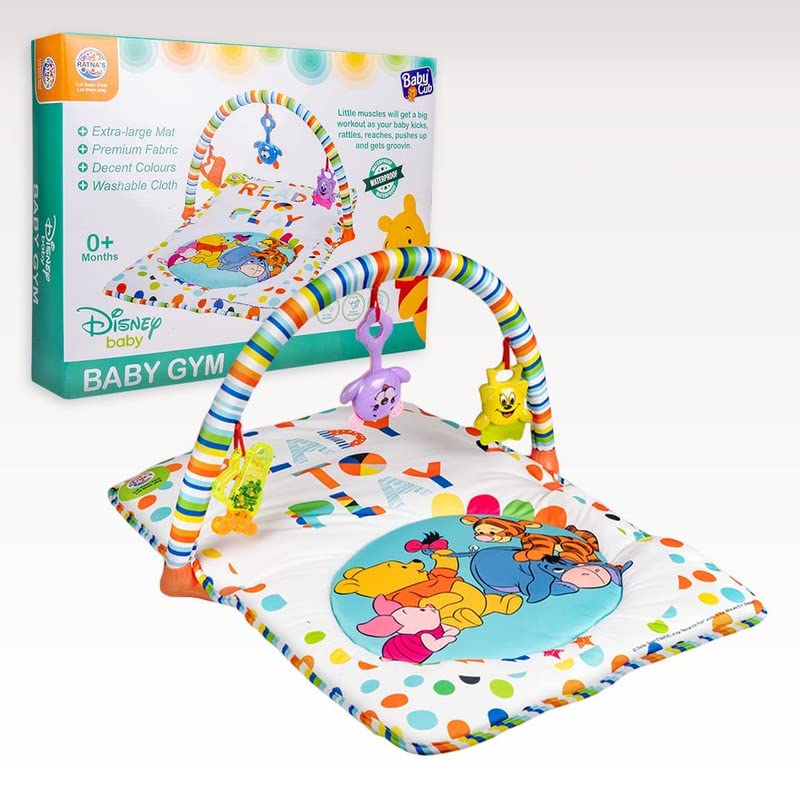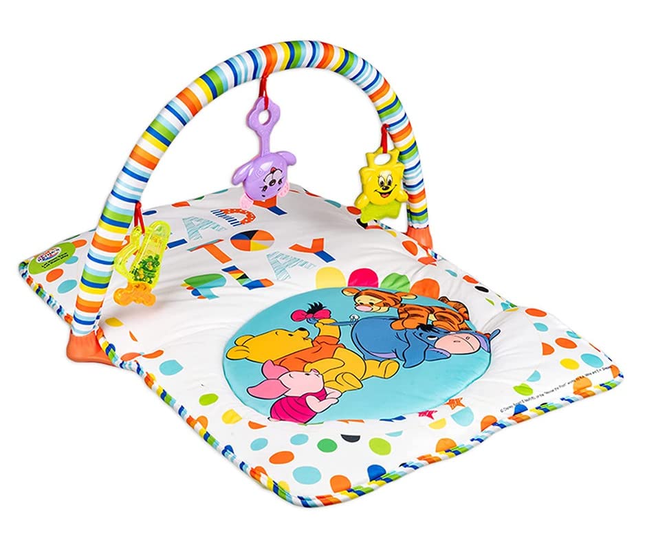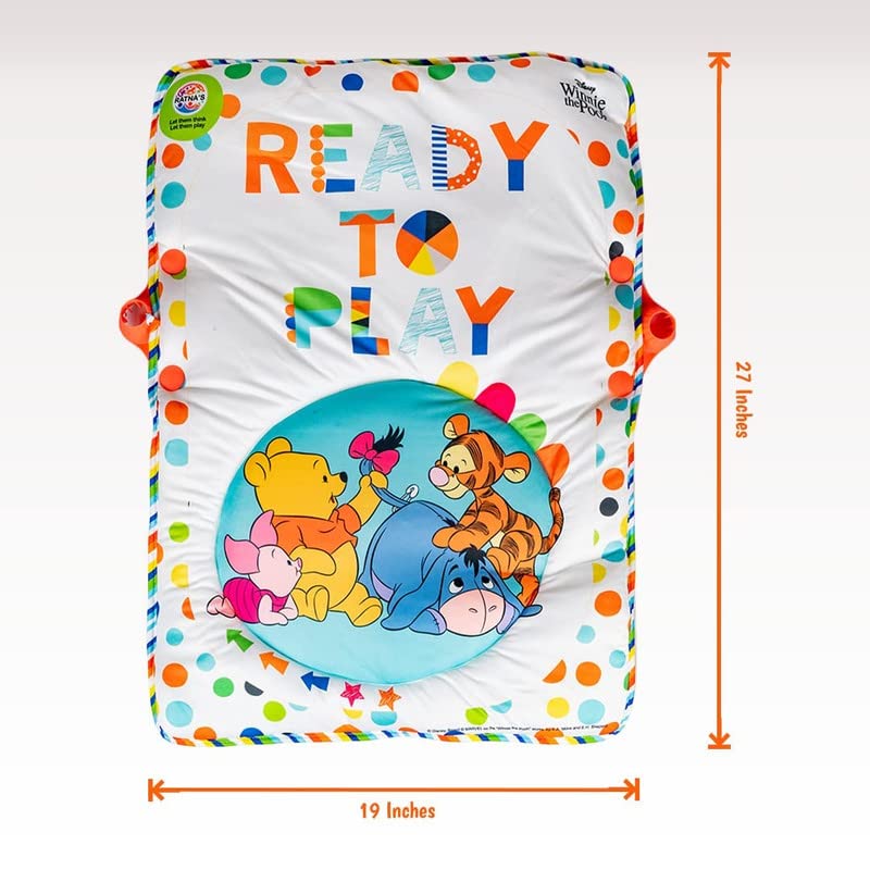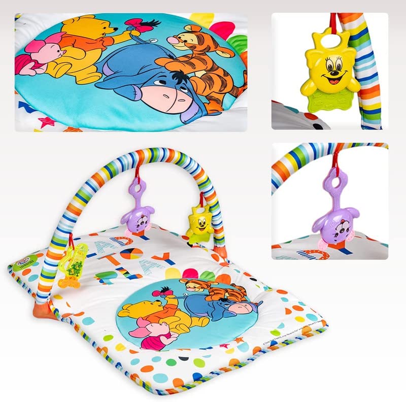 Baby Play Gym Winnie The Pooh with Waterproof Soft Cozy matt Size 28 x 20 inches & Cute Hanging Toys for Infants (Multicolour)