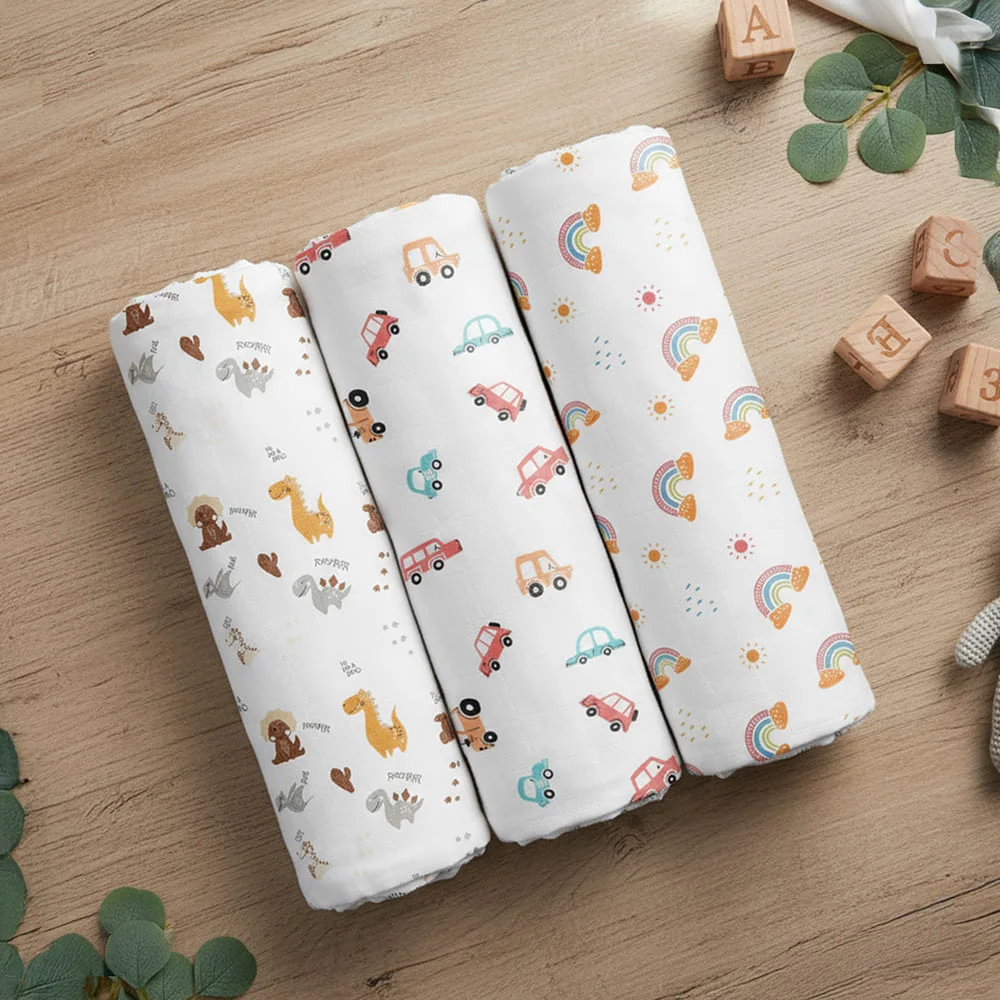 StarAndDaisy Baby Swaddle Muslin Set of 3, Soft, Breathable and Lightweight Wrap for Newborns – Rainbow