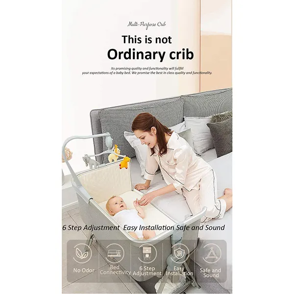 ❤️ Dual Side Height Adjustment and Conversion to Joy Bed: It can be connected to your bed, and can also be lifted from one side to keep the baby at raised position after feeding. Also, it can be transformed into a baby’s own safe and secure play area.
