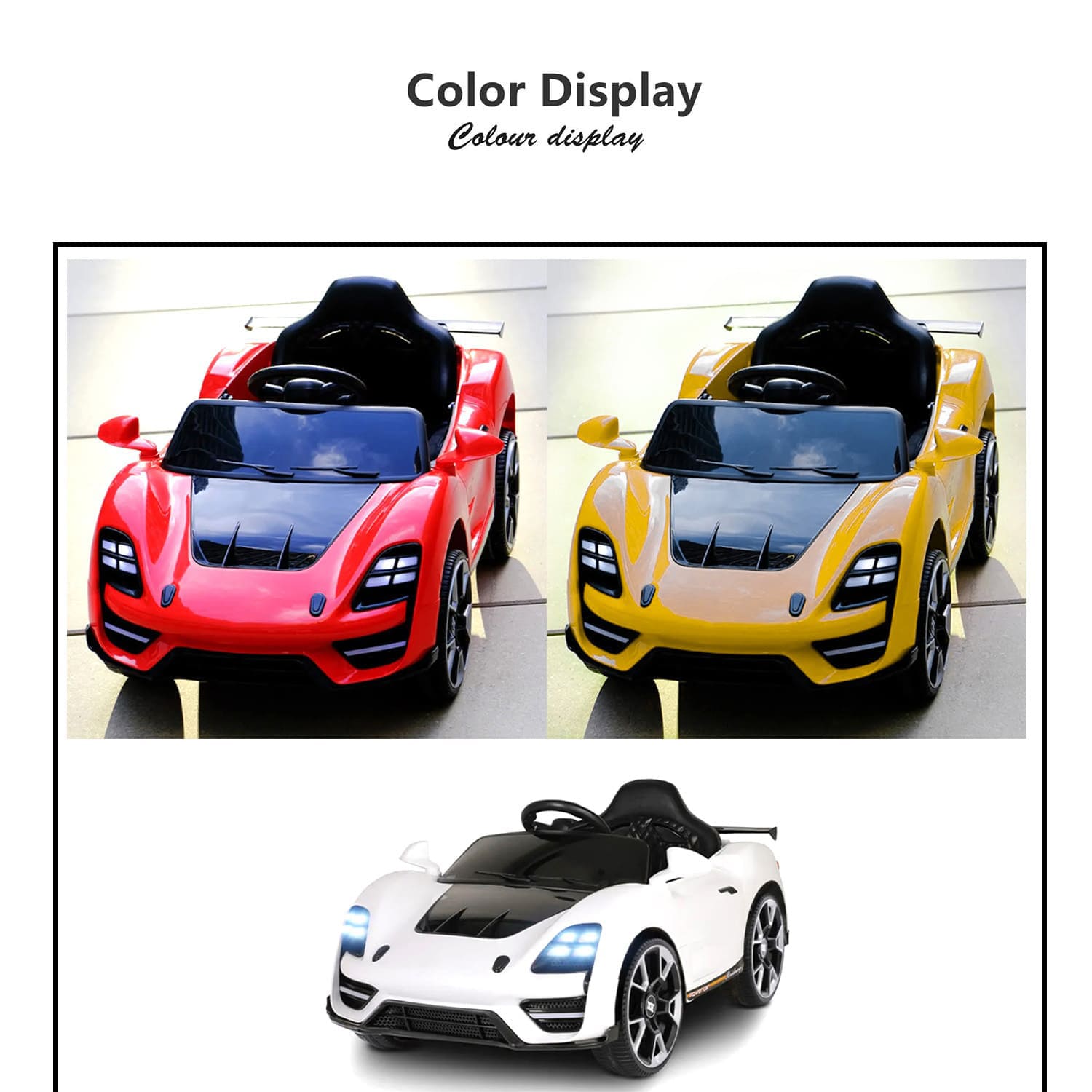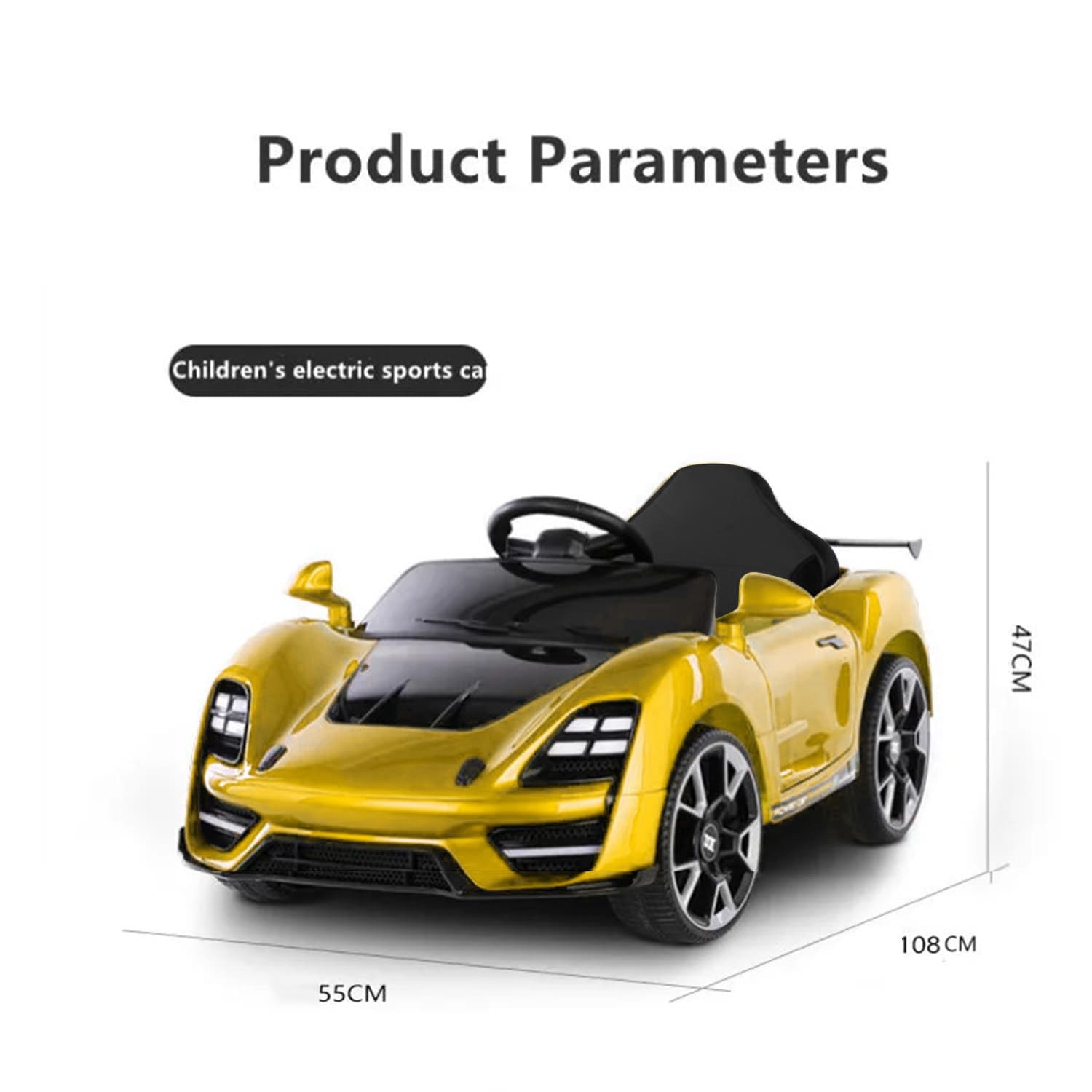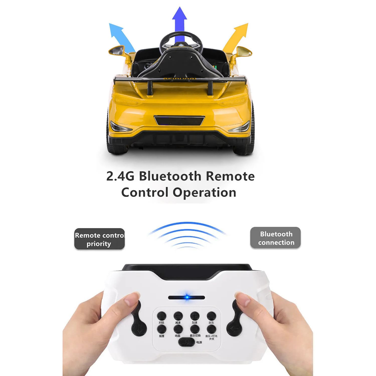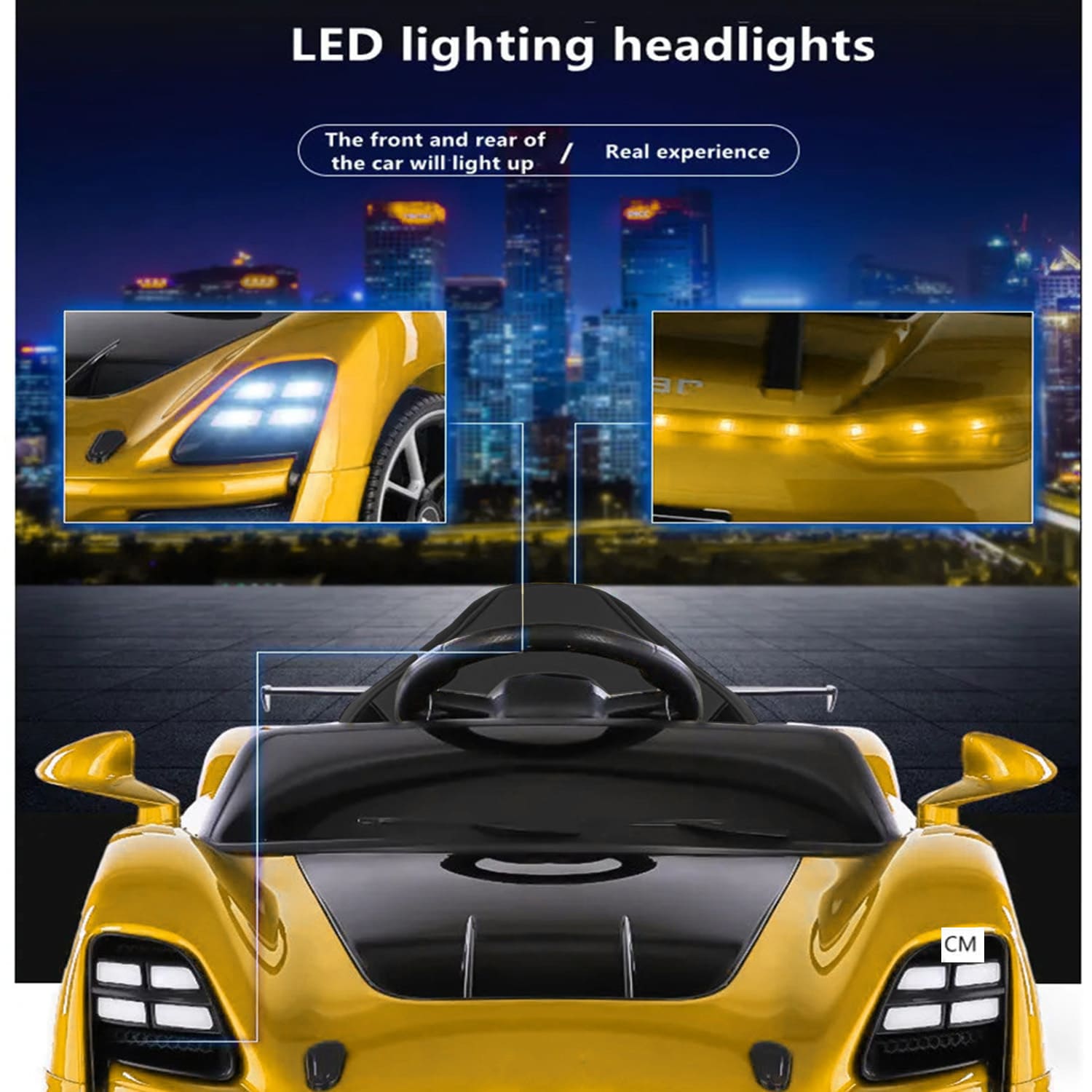 StarAndDaisy Sports Car for Kids with Remote Control & 12V Battery Powered, LED Lights, Wheels Suspension, Music & Horn – Yellow, LFC-BDQ1588