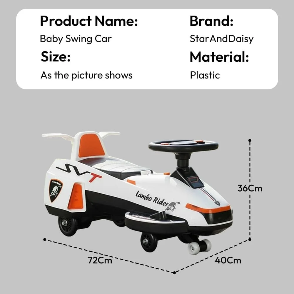 StarAndDaisy Battery Swing Car for Kids – Electric Ride-on Vehicle with Accelerator, LED Lights & Music – Pink