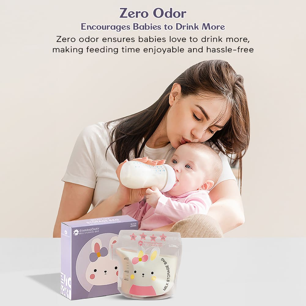 StarAndDaisy Breast Milk Storage Bag, Transparent & BPA Free Disposable Printed Milk Bags for Baby Feeding Pack Of 30 – 200ML