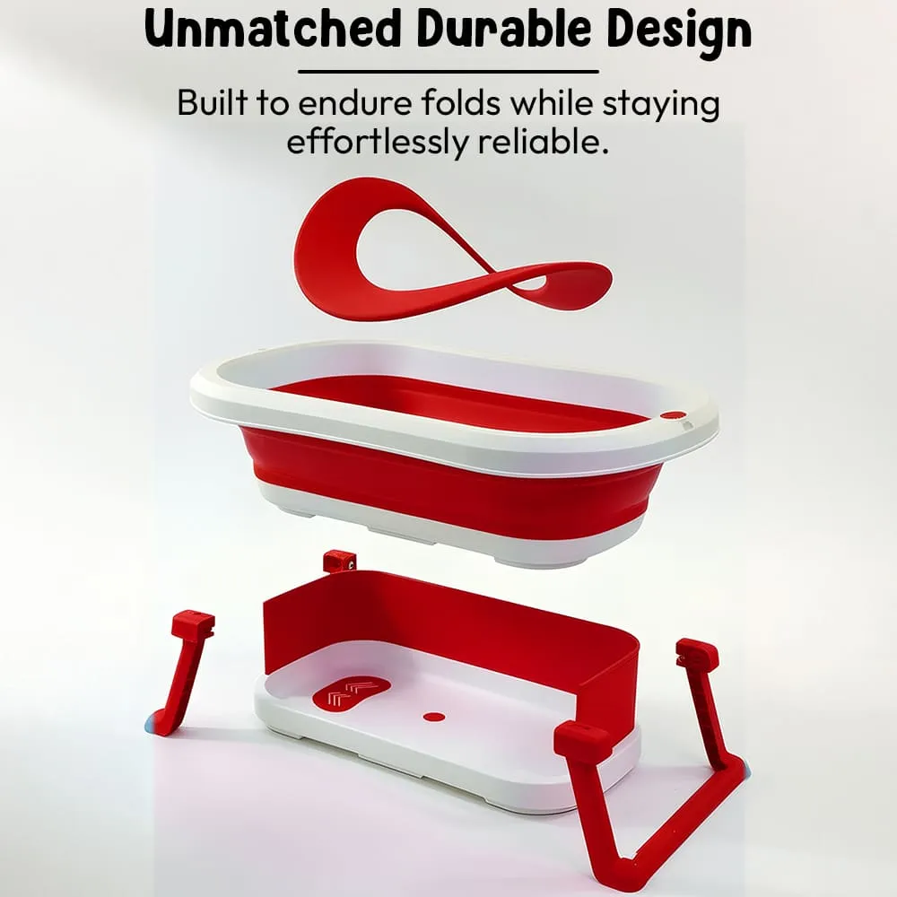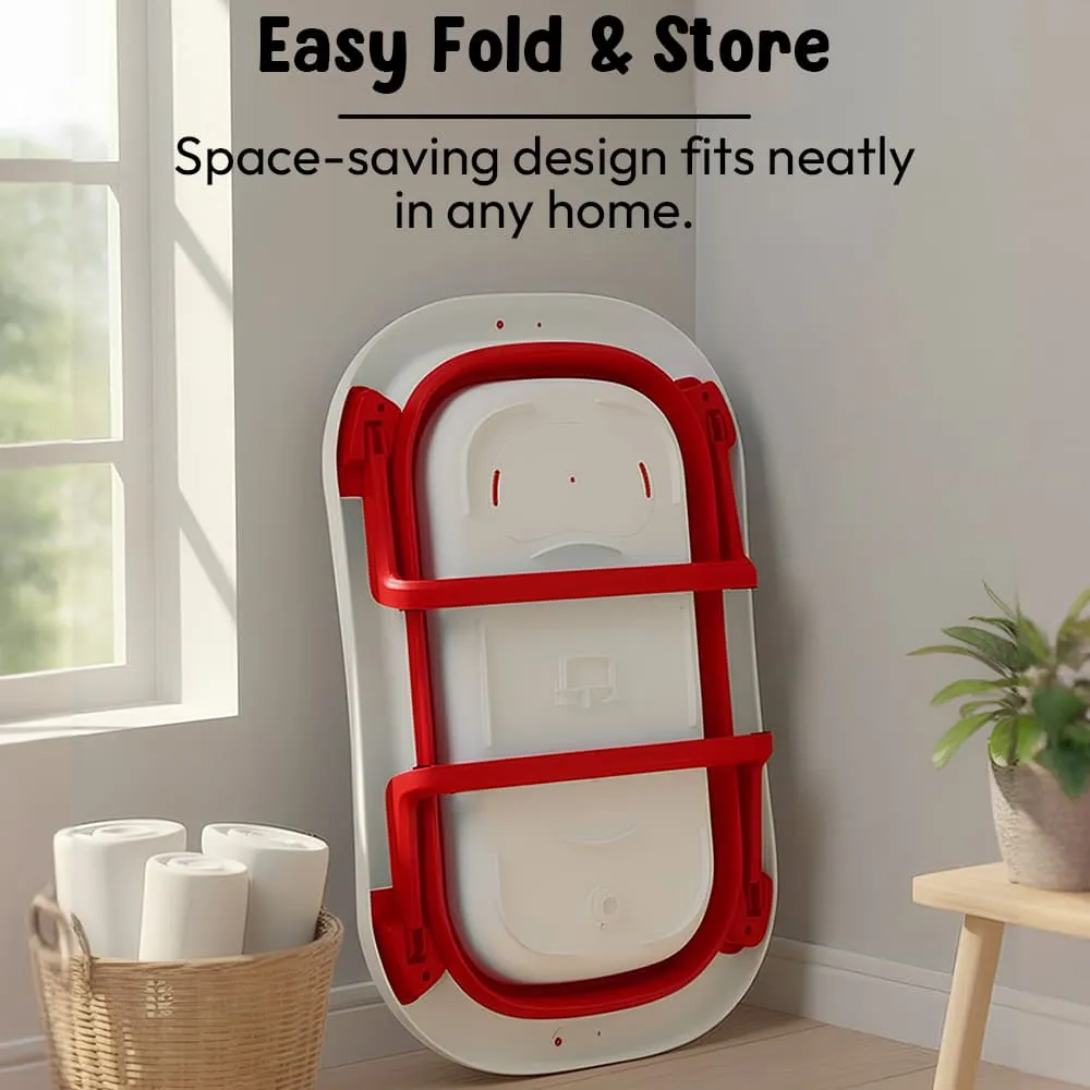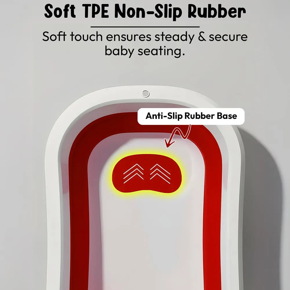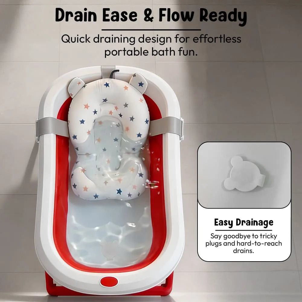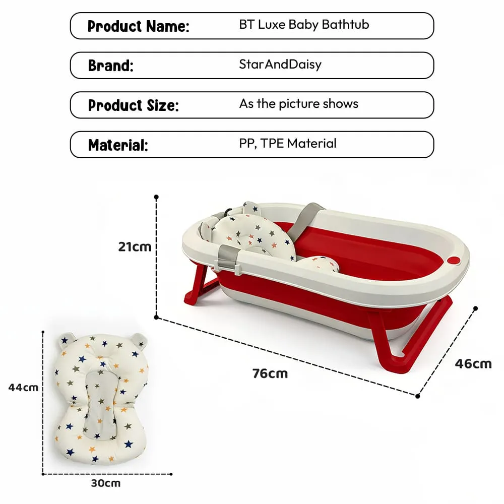 StarAndDaisy Bt Luxe Baby Bath Tub, Foldable Infant Bathtub with Floating Cushion and Anti-Slip Support – Red & White