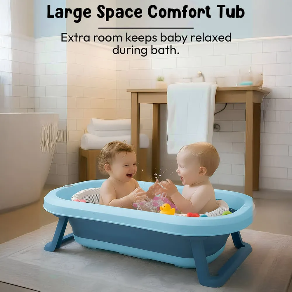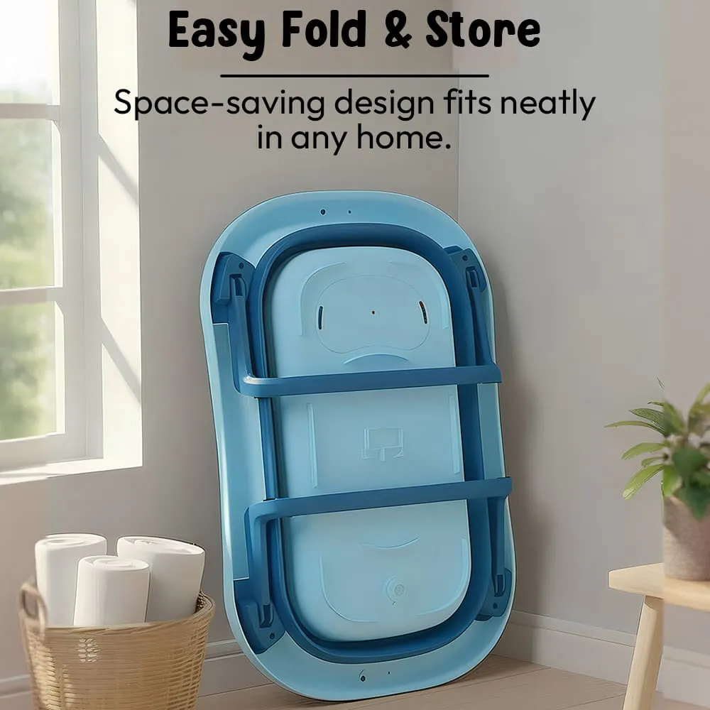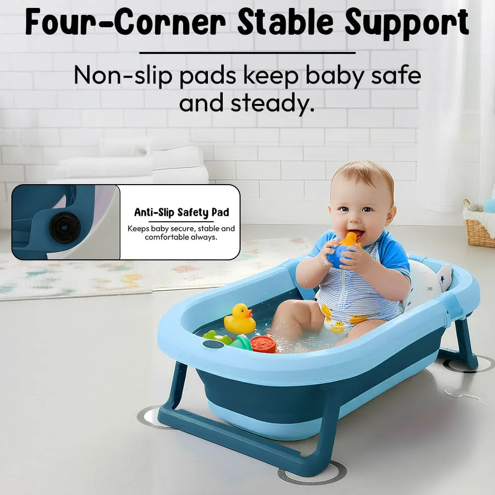 StarAndDaisy BT Luxe Baby Bath Tub, Foldable Infant Bathtub with Floating Cushion and Anti-Slip Support – Sky Blue