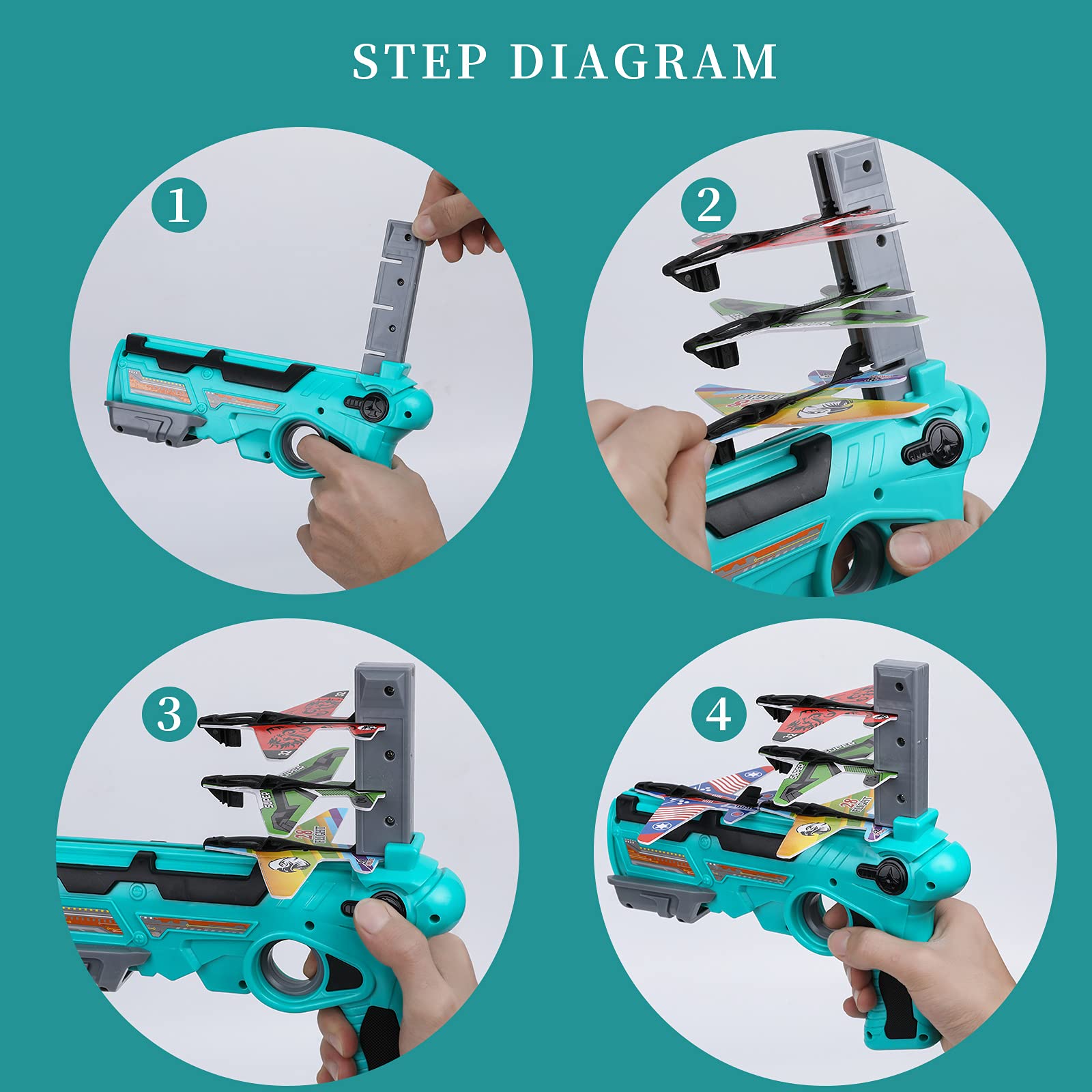 Bubble Catapult Plane Toy Airplane, Foam Air battle continuous launch, One-Click Ejection Model With 4 Pack Airplane Foam plane, Pistol Launcher Outdoor Sports Glider Airplane Fun Toy for Kids and Boy (Green)