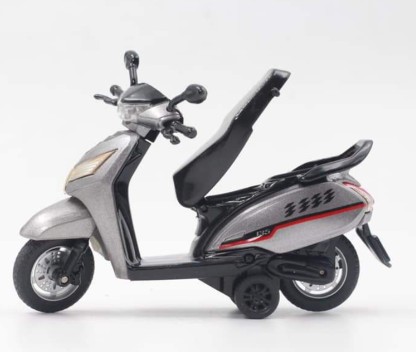 The scooter bike toy is made up of safe-to-use plastic and has a seat that can be opened. The suspension can be activated by pressing the rear portion of the seat, which adds to the realism of the toy. The scooter bike toy also has a small attachment in the park that allows it to convert from a pullback to freewheel mode.