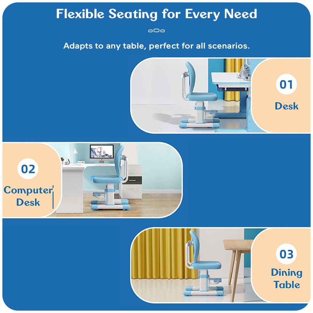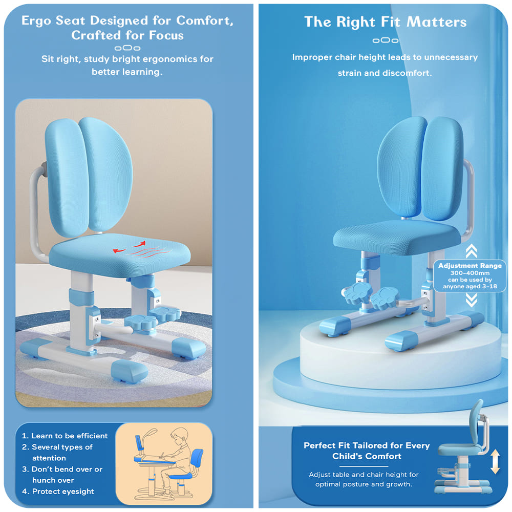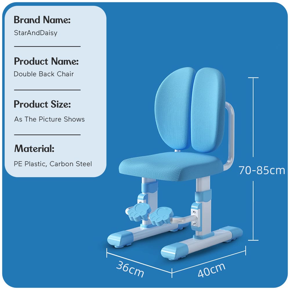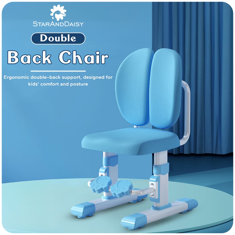 StarAndDaisy Children’s Study Chair with Height Adjustable Double Back Chair for Study Table, Kids Study Desk Chair for Study with Supportive Back – 007 Blue