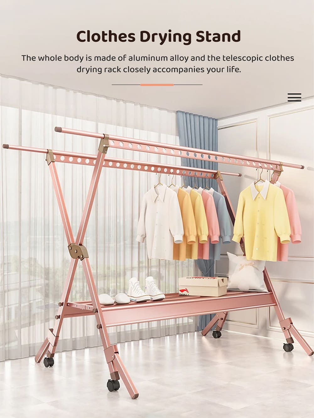 Clothes Drying Racks – Aluminum Alloy Laundry Stand Organizer with Double Road and Wheels (Black) – StarAndDaisy
