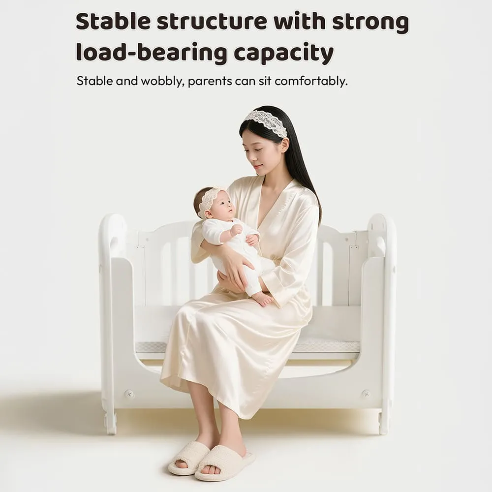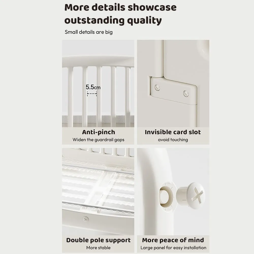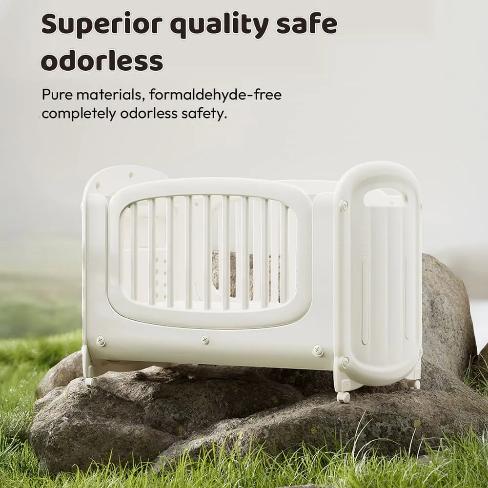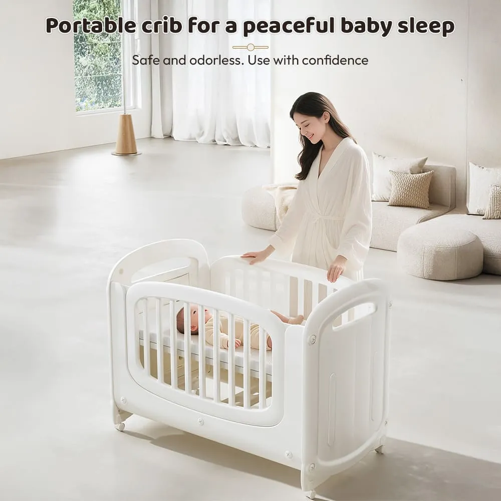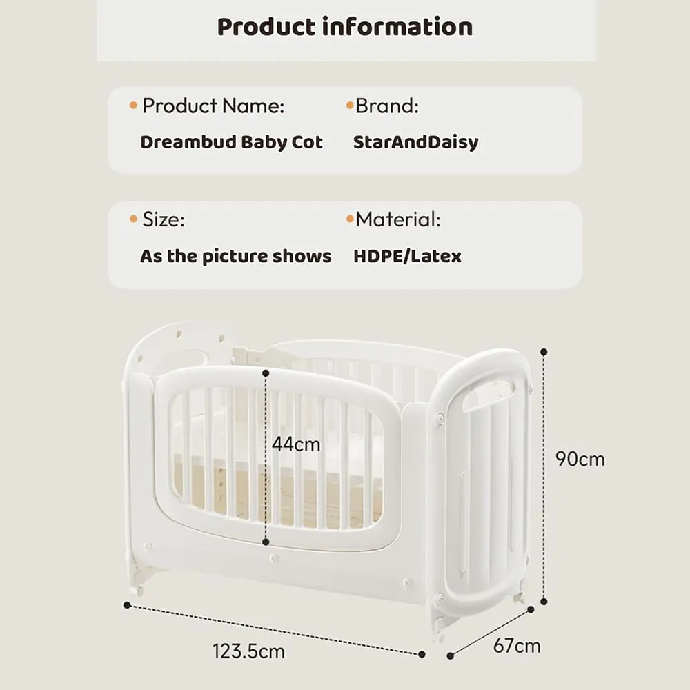 StarAndDaisy Dreambud Baby Cot Crib Bed for 0–5 Years Convertible Portable Crib with Montessori Cocoon Design, HDPE/ Latex – White