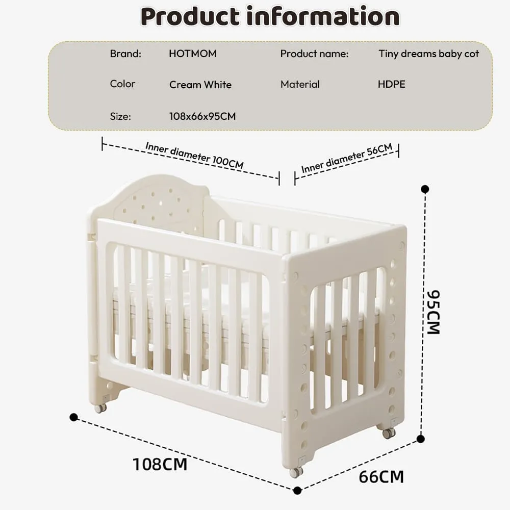 StarAndDaisy Tiny Dreams 4-in-1 Convertible Baby Cot Crib with Adjustable Height, HDPE Safe Material – White