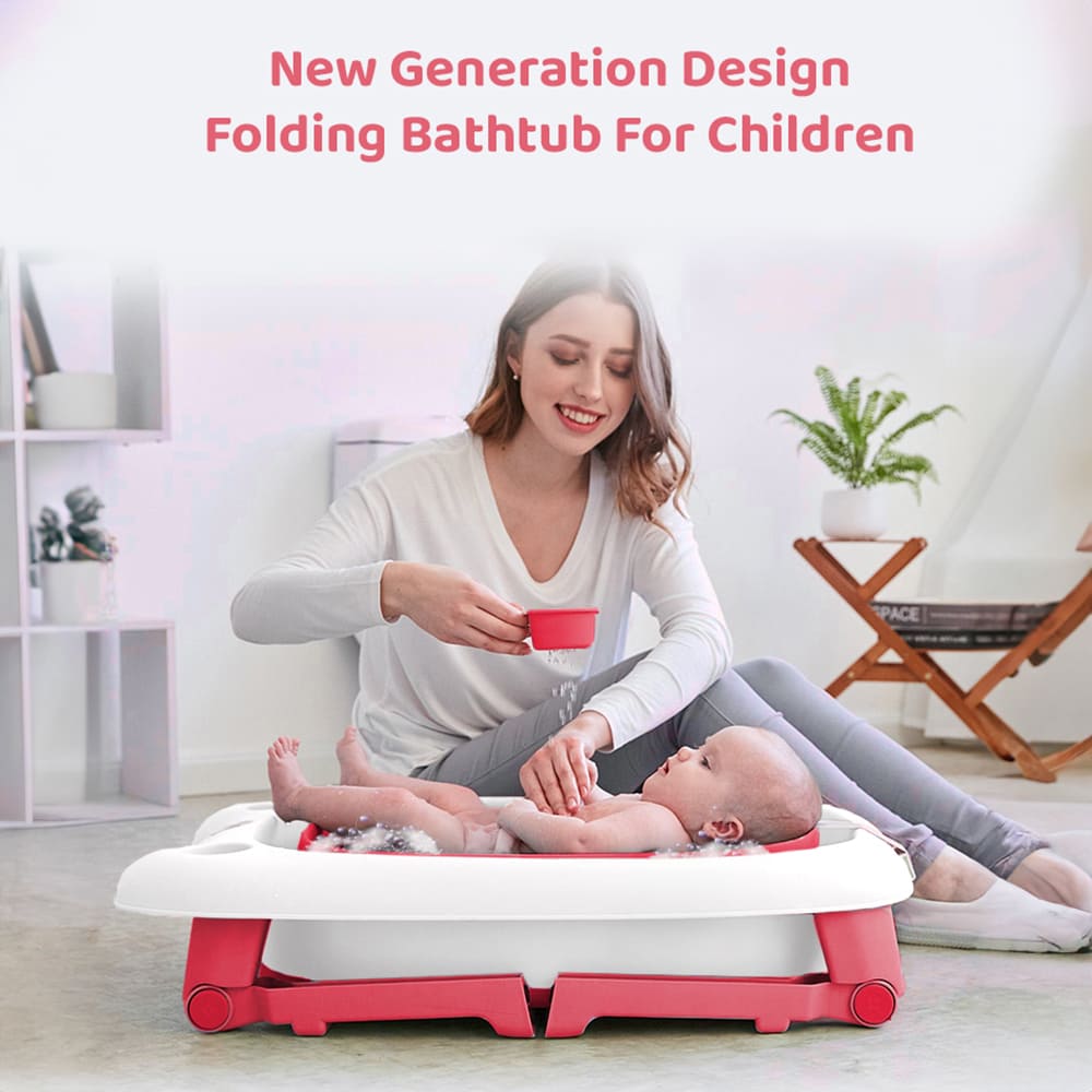 Collapsible Bath Tub For Newborn – Baby Vertical Bath Tub with Stool, Newborn Comfort to Toddler Fun (Pink) – StarAndDaisy