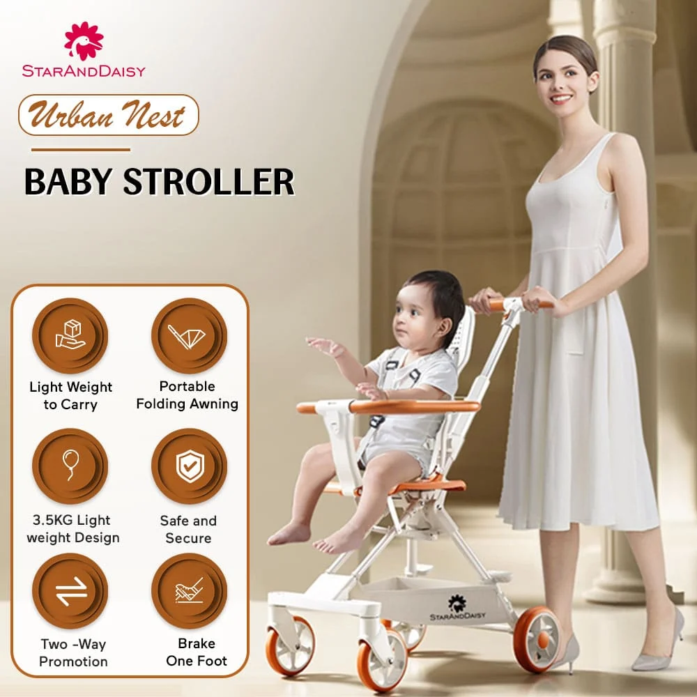 StarAndDaisy Compact Stroller for Baby, Ultra-light Travel Baby Stroller with One Click Foldable Design & 360°Swivel Seat – White