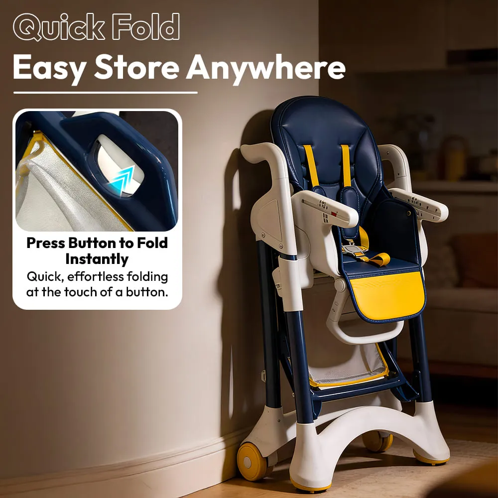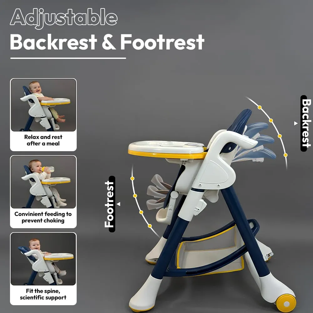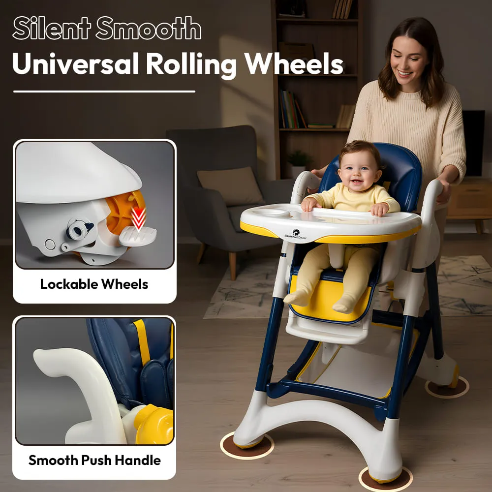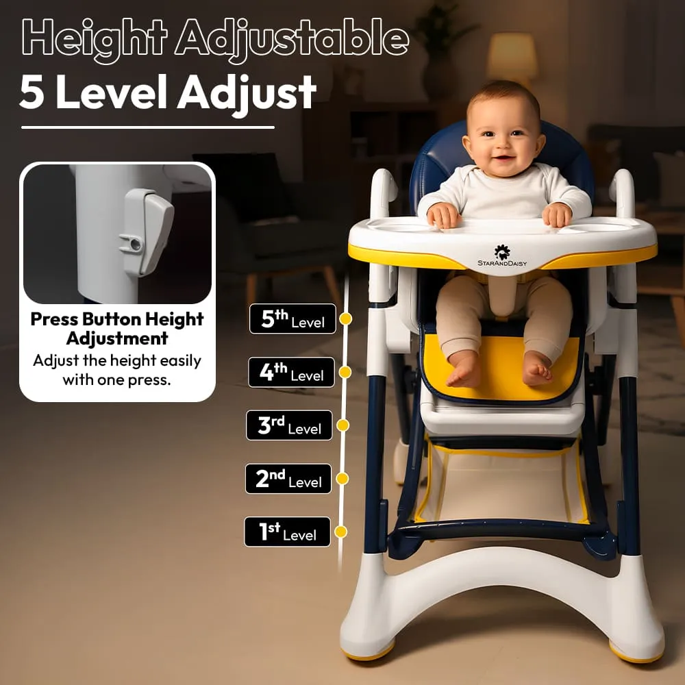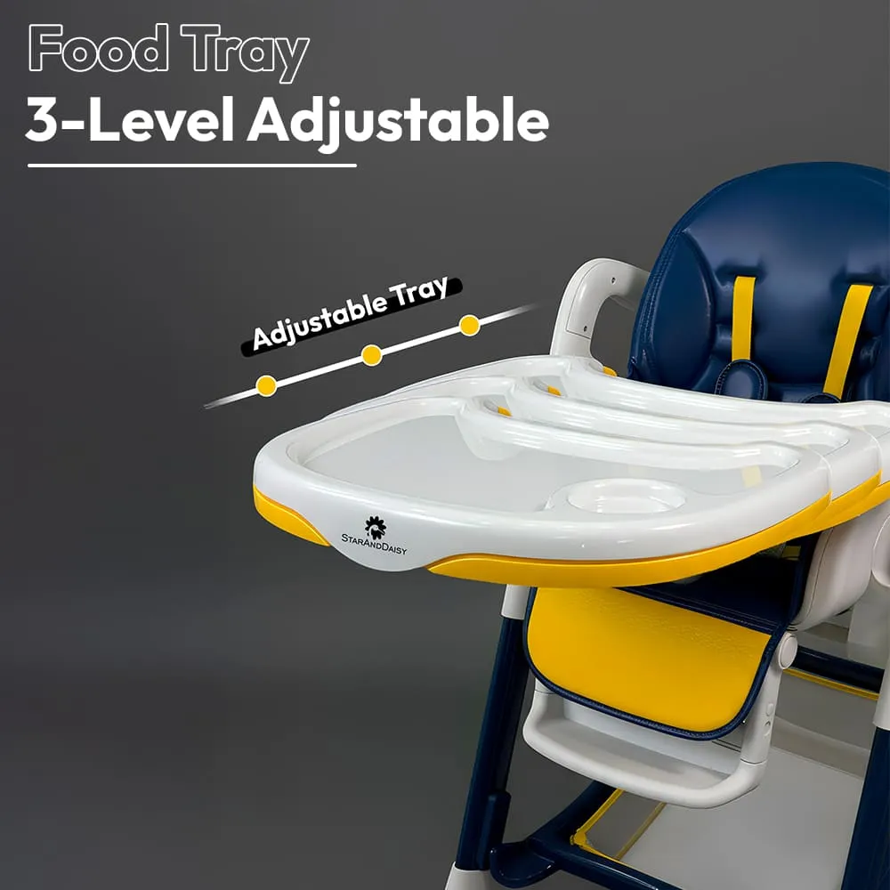 Crowned Baby High Chair by StarAndDaisy for Kids With 5-level Seat Adjustment And 5-Point Safety Belt, Kids Age 0.5 Yrs to 6 Yrs Eat, Play & Rest (Yellow & Blue)