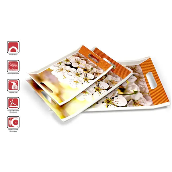 Crystal by SND Homes Melamine Serving Tray, Set of 3 (Small, Medium and Large Size) Villori Series Tray
