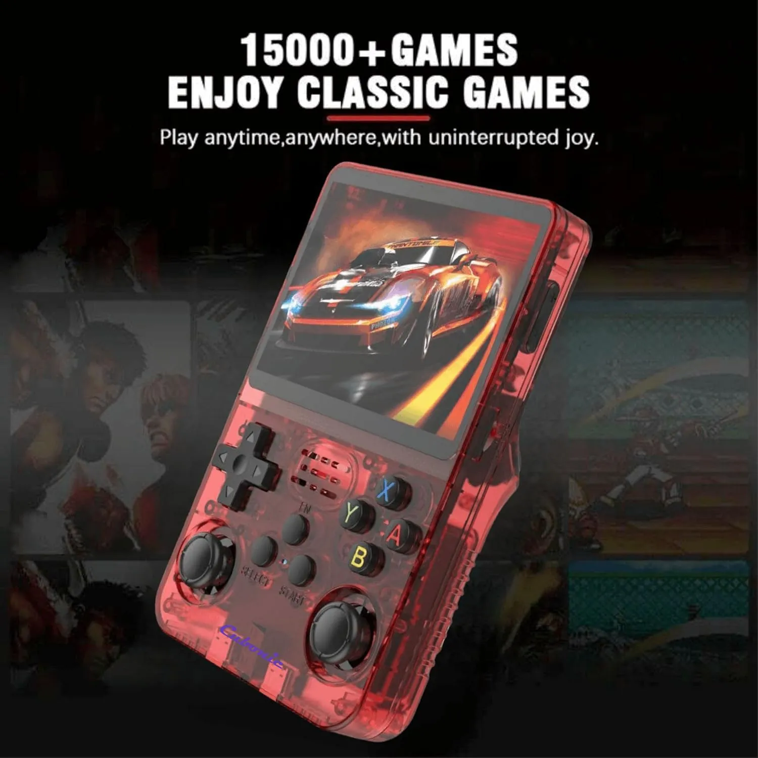 Cubonic CrystalPlay R36S Retro Gaming Console, Transparent PixelGlass, 3.5-Inch LCD Screen, RK3326 Quad-Core, 15000+ Games, Dual Joystick, Support MAX 256GB Storage, 3000mAh Battery – Red