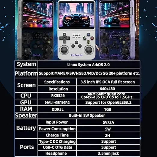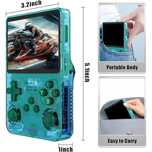 Cubonic CrystalPlay R36S Retro Console with 3.5″ LCD, 15,000+ games, dual joysticks, RK3326 chip, 256GB support, and 3000mAh battery (Green)