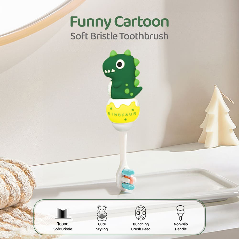Cute Dino Toothbrush for Kids – Soft Bristle Tooth Brush with Silicone Grip Aged 2 Years and Above – StarAndDaisy