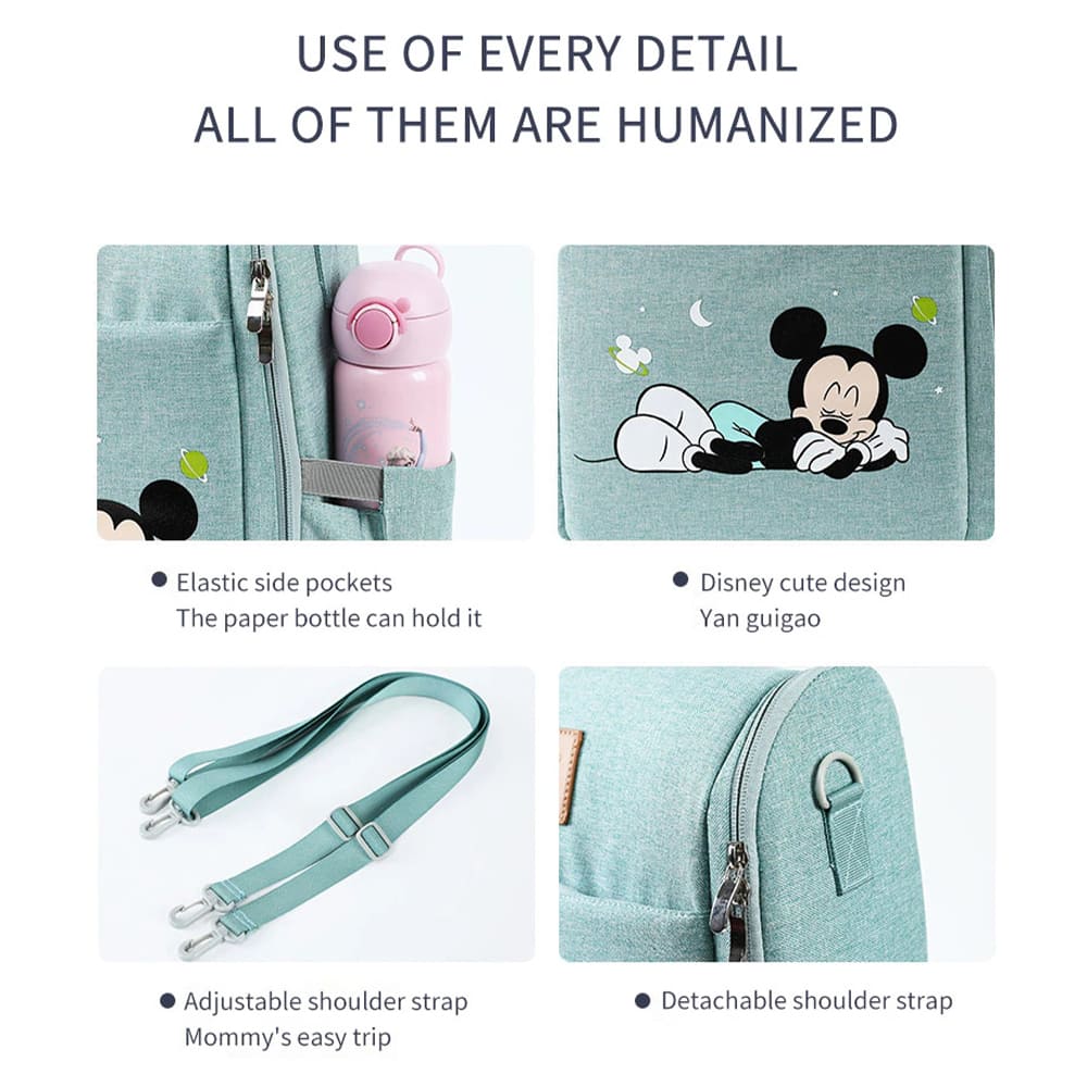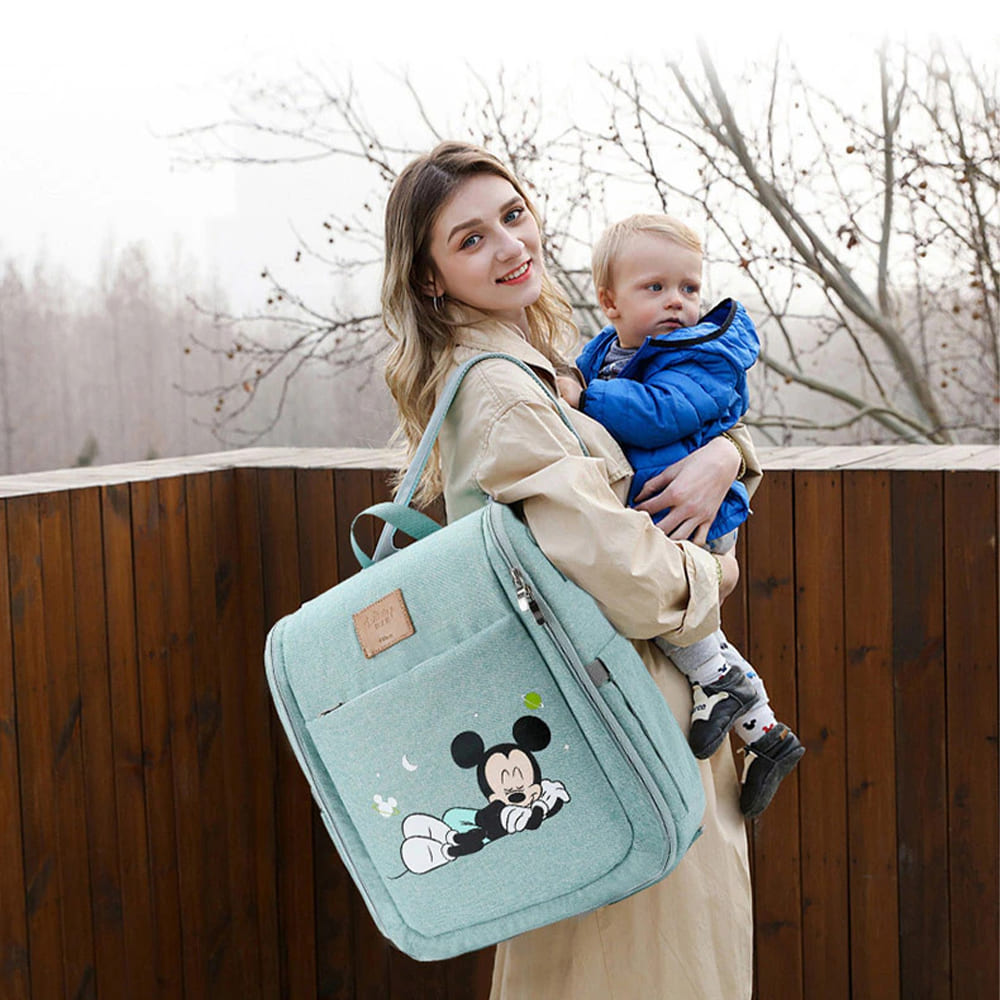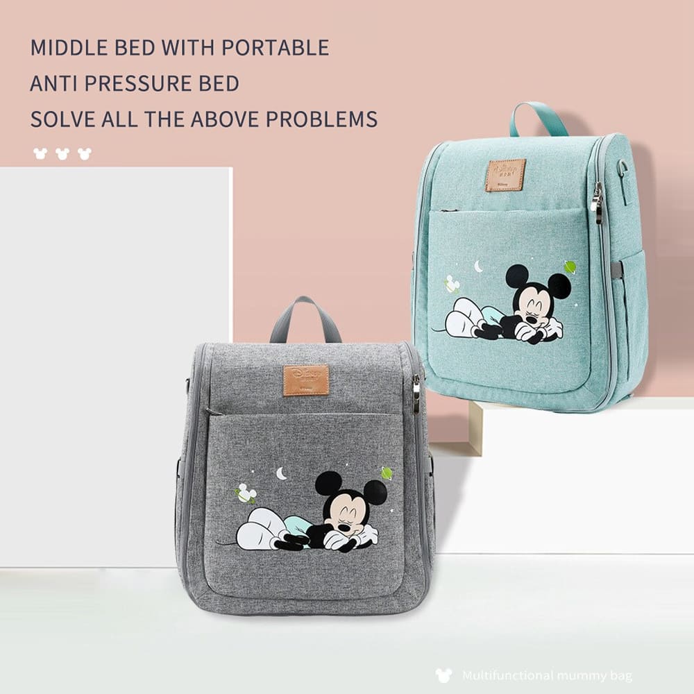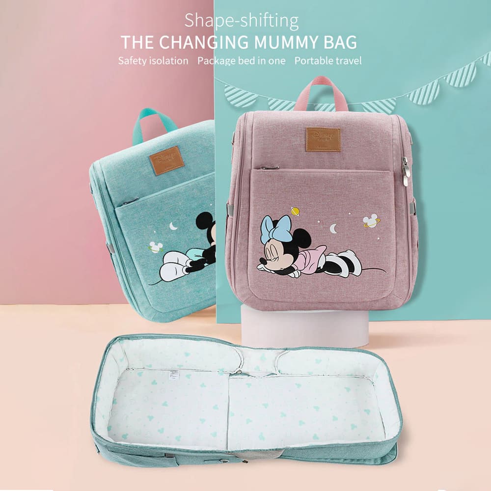 Disney Mickey Mouse Dual Purpose Baby Diaper Bag Backpack Foldable Bed Bags Baby Travel Insulation Mosquito Net Bag Baby Diaper Bag Backpack (Pink)