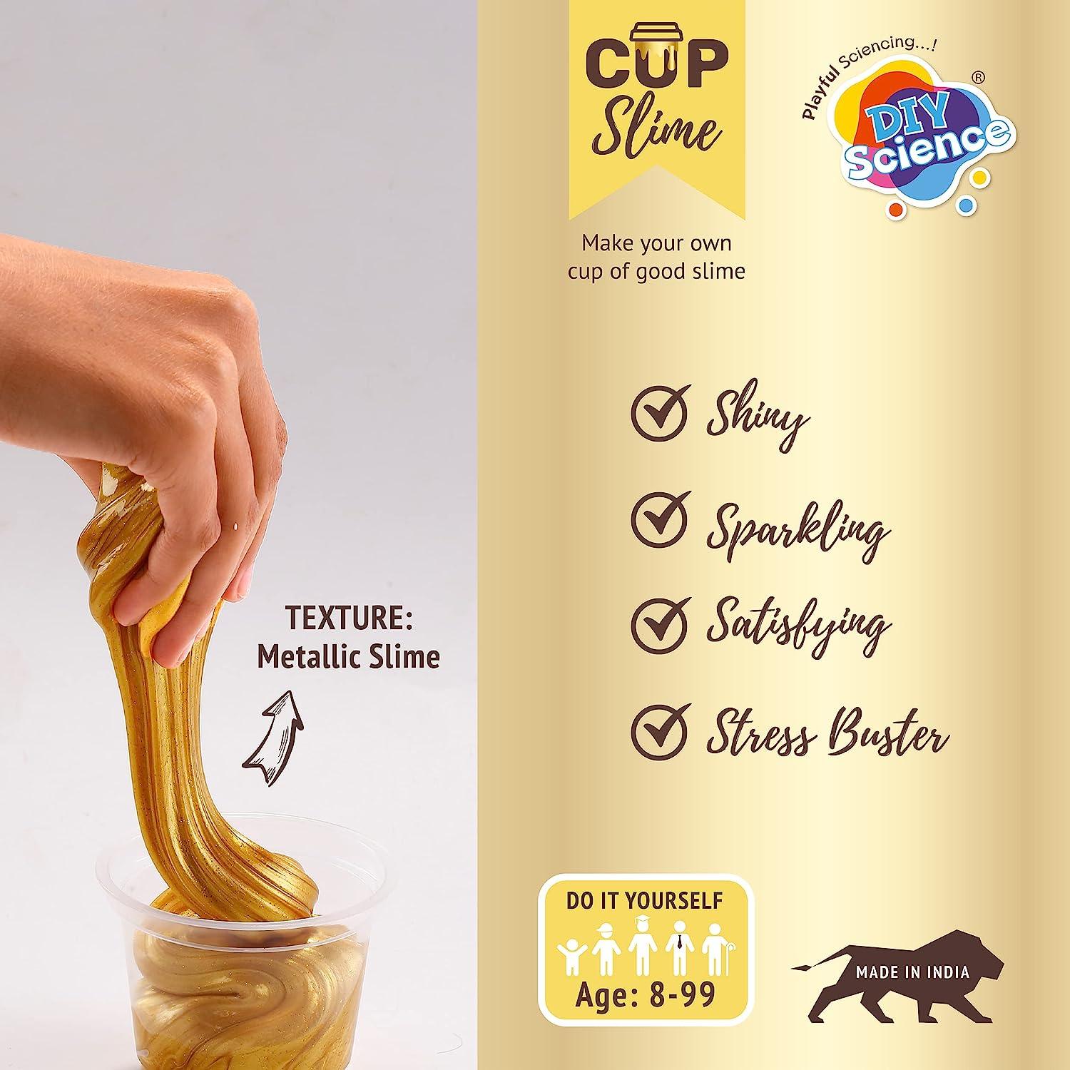 Craft mesmerizing metallic slime with the DIYScience® Golden Jewel Slime Kit for kids. This complete package features everything needed – from vibrant, scented PVA glue to activator gel, golden pigment, and fun bead toppings. Ideal for kids aged 8 and above, it’s a perfect addition to birthdays, science experiments, and creative play sessions.