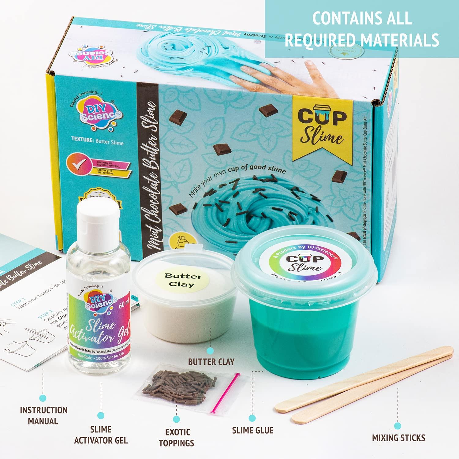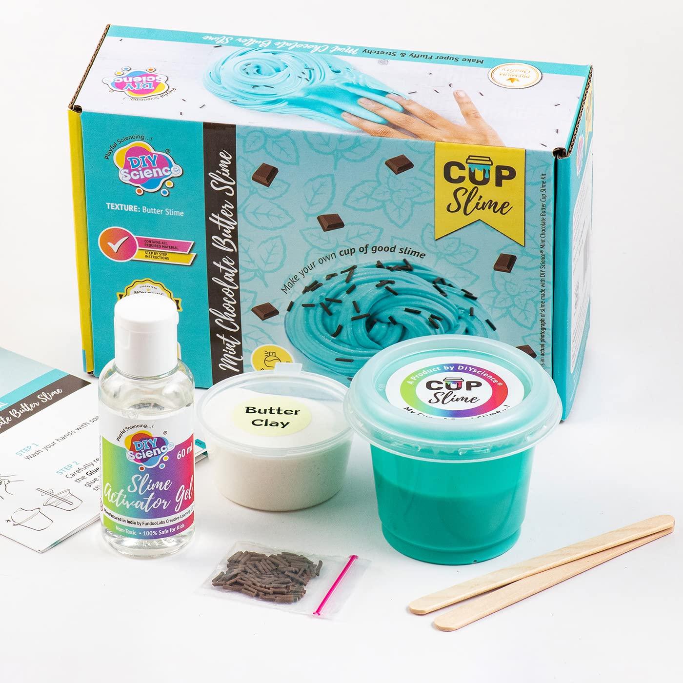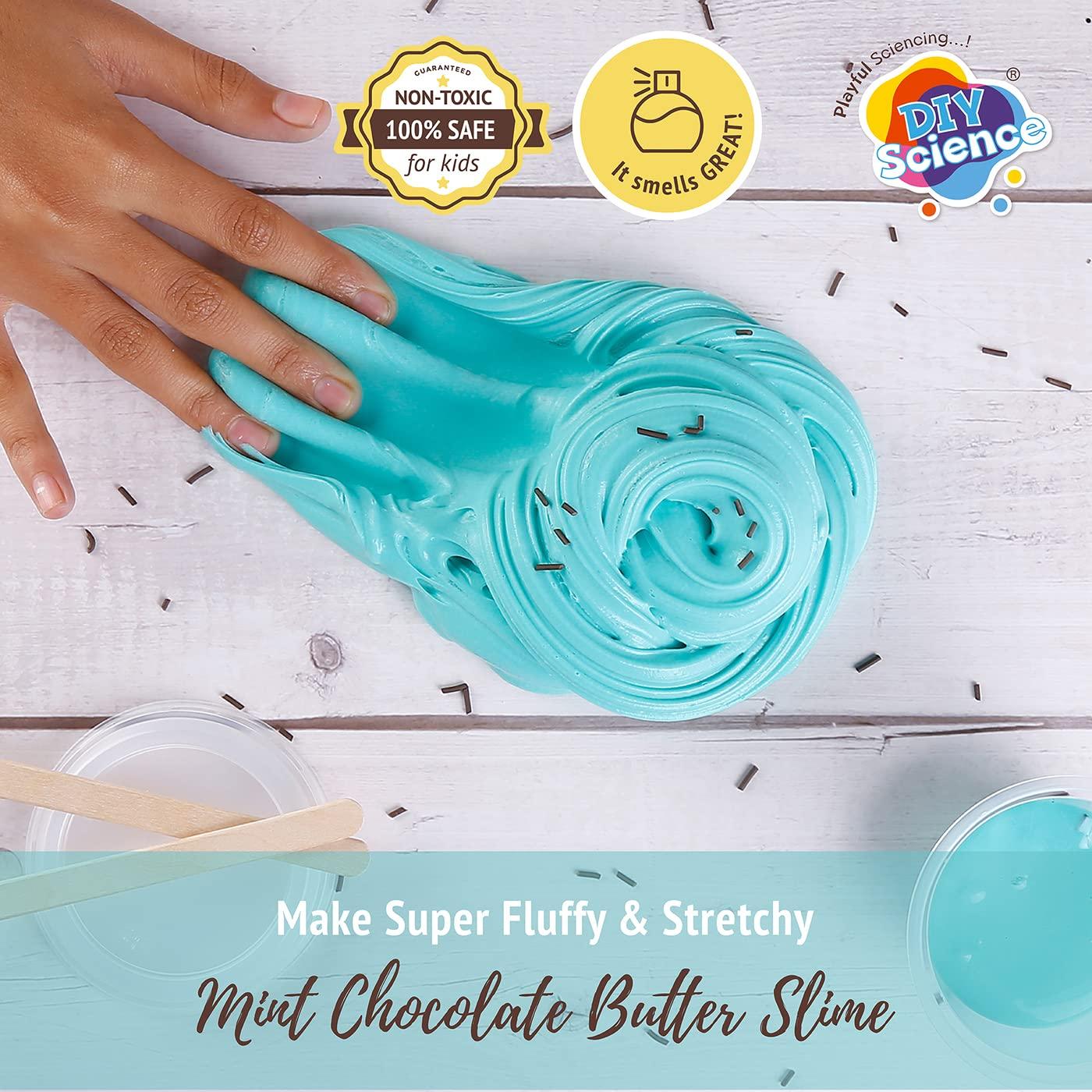 Create fluffy, buttery, and mint chocolate scented slime with the DIYScience® Mint Chocolate Butter Slime Kit. This all-in-one kit includes colored and scented PVA glue, activator gel, foam clay, choco sprinkles, and more. Perfect for kids ages 8 and up, it’s ideal for birthdays, science experiments, and creative play. Our high-quality, non-toxic materials ensure safety and eco-friendliness. The user guide provides tips, tricks, and scientific insights, while enhancing sensory skills, creativity, and cognitive development. Unleash your imagination with this STEM toy and dive into the world of mint chocolate butter slime!