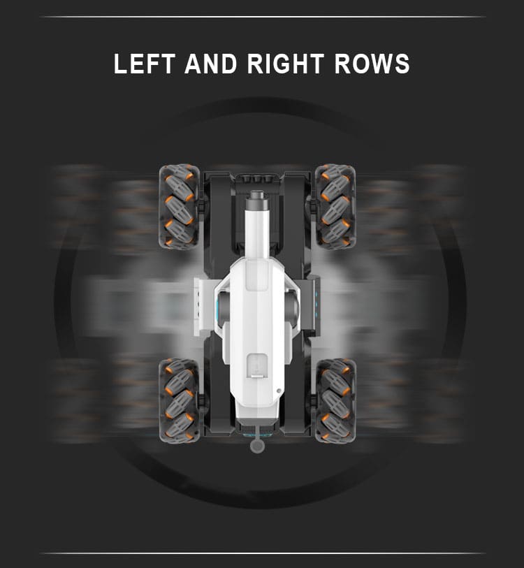 THREE-SPEED DRIVING MODE WITH OMNIDIRECTIONAL MOVEMENT – Four super-large mechanism with a diameter of 11CM can realize omnidirectional movement due to their unique structure. Cooperating with the built- in three-speed driving mode of the Macha, it can realize diagonal movement and circle inside and outside. Complete various driving routes freely. Movement is not limited to routes.