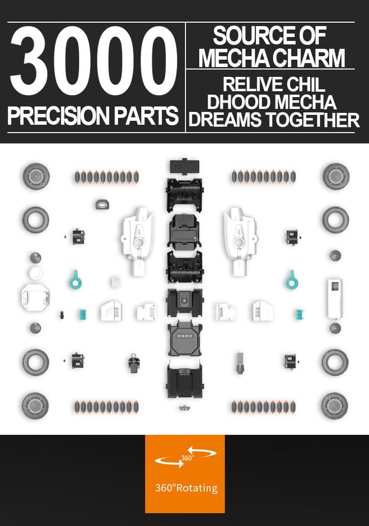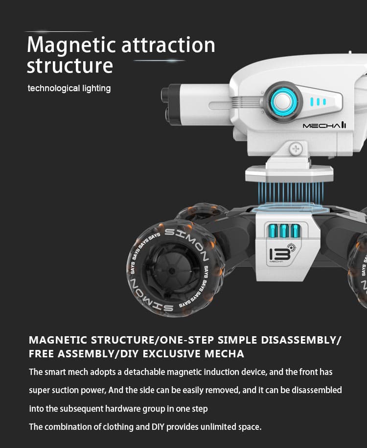 MEGNATIC STRUCTURE / ONE-STEP SIMPLE DISASSEMBLY / DIY EXCLUSIVE MECHA – The smart mech adopts a detachable magnetic induction device, and the front has super suction power, And the side can be easily removed, and it can be disassembled into the subsequent hardware group in one step. The combination of clothing and DIY provides unlimited space.