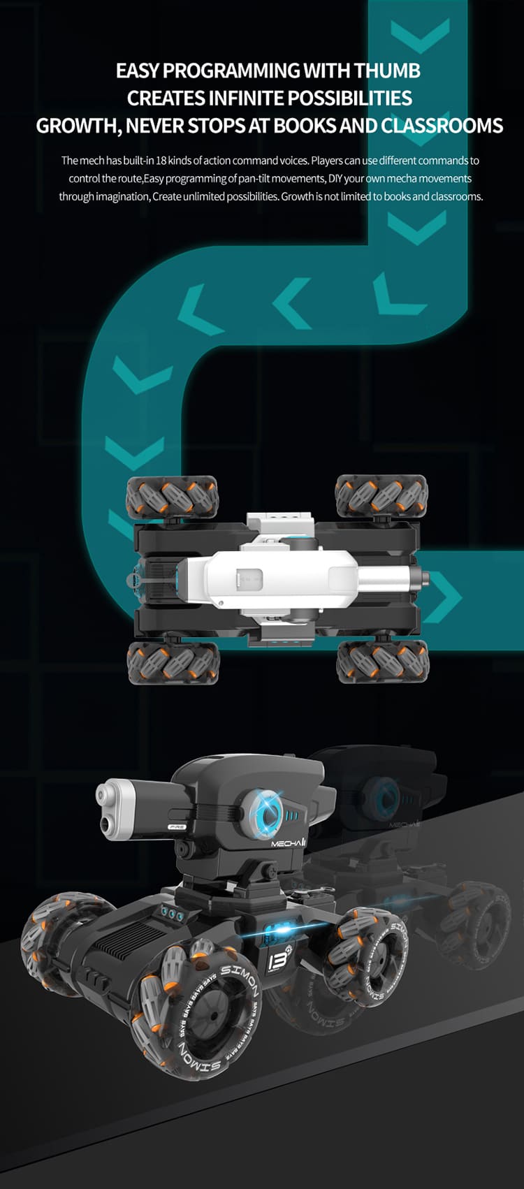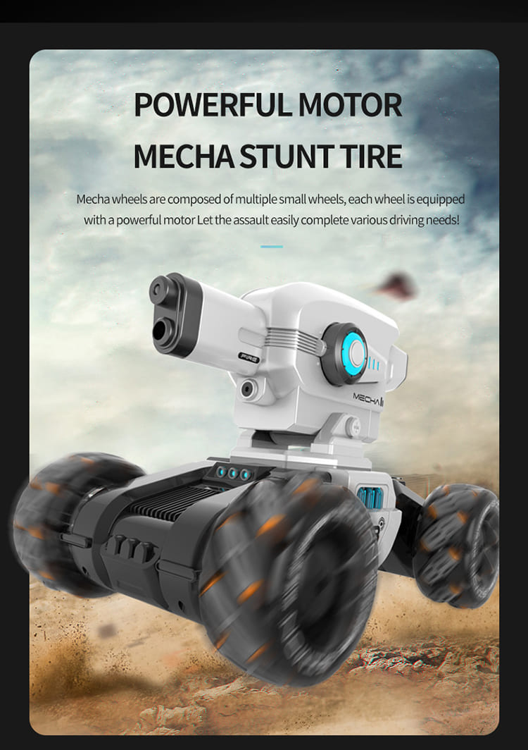 POWERFUL MOTOR MECHA STUNT TIRE – Macha wheels are composed of multiple small wheels; each wheel is equipped with a powerful motor Let the assault easily complete various driving needs!