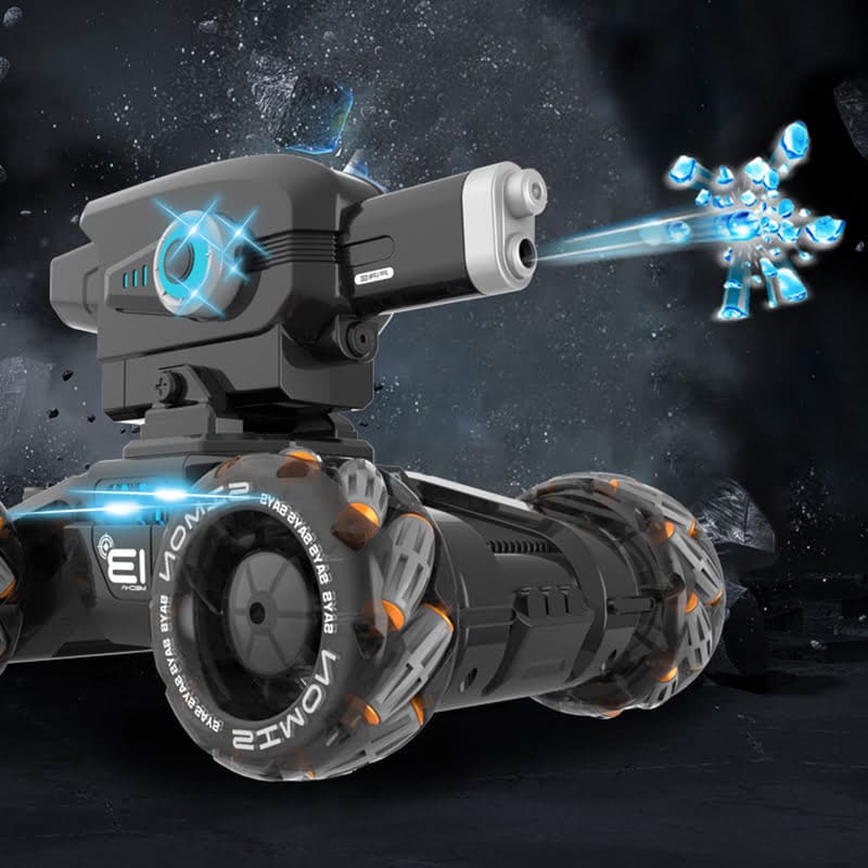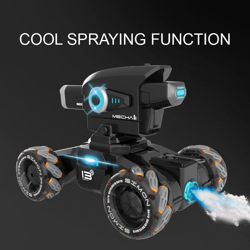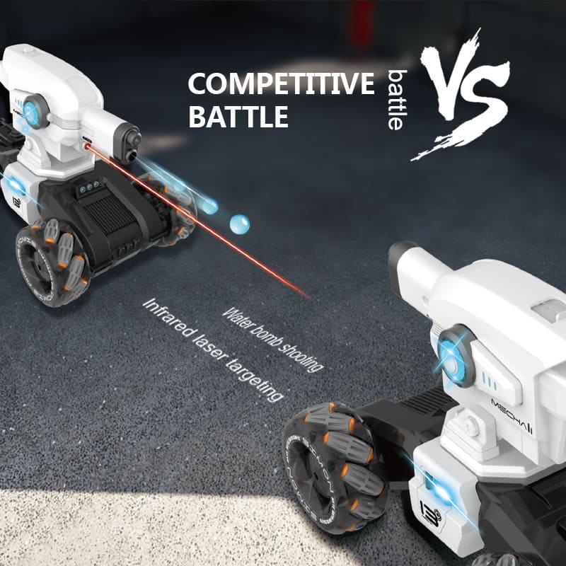 PRODUCT FUNCTION – Forward, Backward, Turn left. Turn right, Rotate. Light, Music, Water Bomb Shooting Spray, Programming, Dual Remote Control, Modular battery, Super Large Number of Magazines, Magnetic pole structure, New patented mecum wheel, Infrared laser
