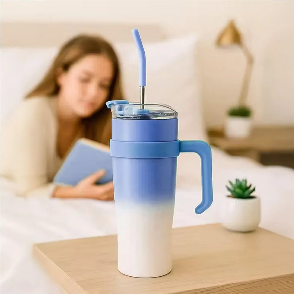 Uonibaby by StarAndDaisy Dual Colour Tumbler with Charm, Stylish Gradient Insulated Tumbler with Handle, Reusable Straw and Leak-Proof Lid – Blue