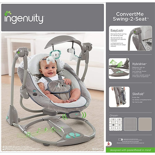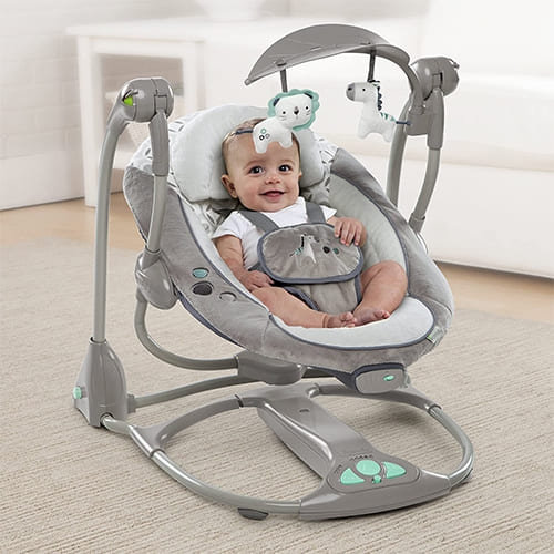 Electric Baby Rocker Swing, 2 in 1 Compact Portable Automatic Baby Swing, Foldable Rocker Swing for Baby (Grey ) – Ingenuity ConvertMe Swing