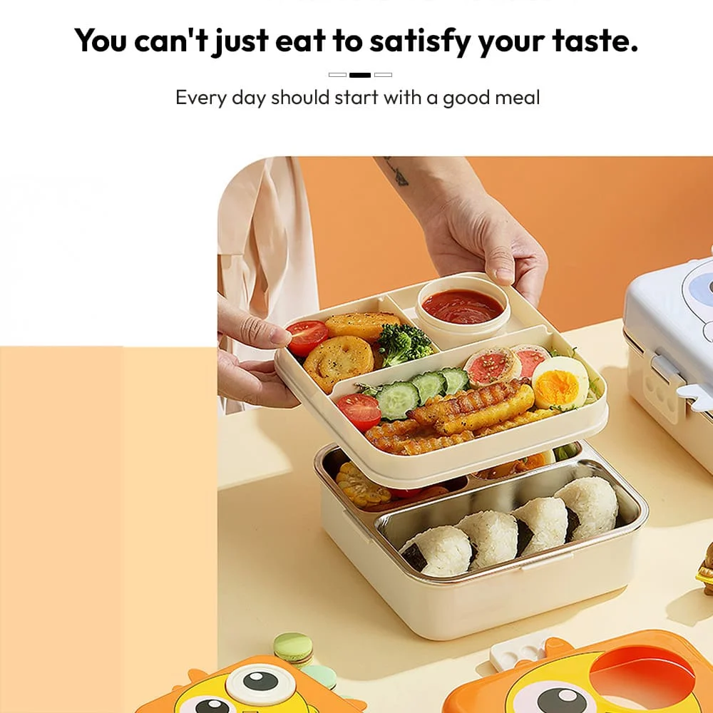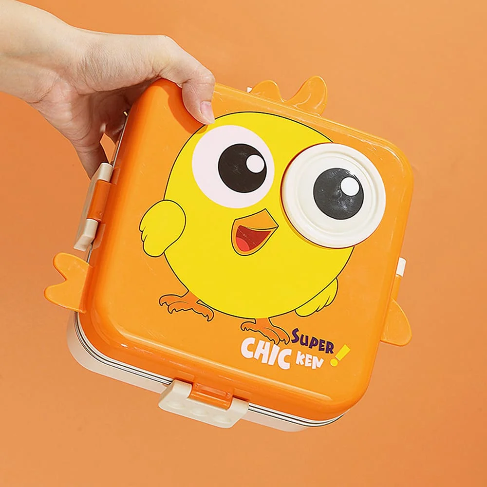 Uonibaby by StarAndDaisy Eye Stainless Steel Lunch Box, Cute Cartoon Design, Leak-Proof & Durable Bento Food Container – Orange