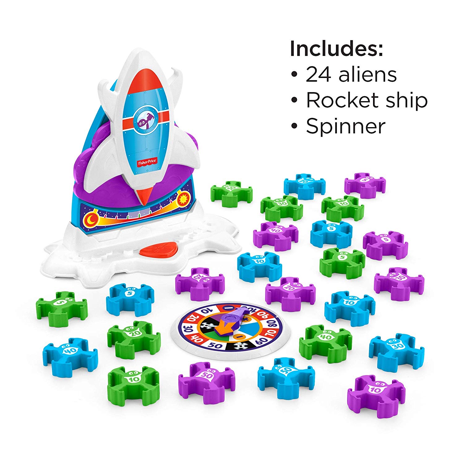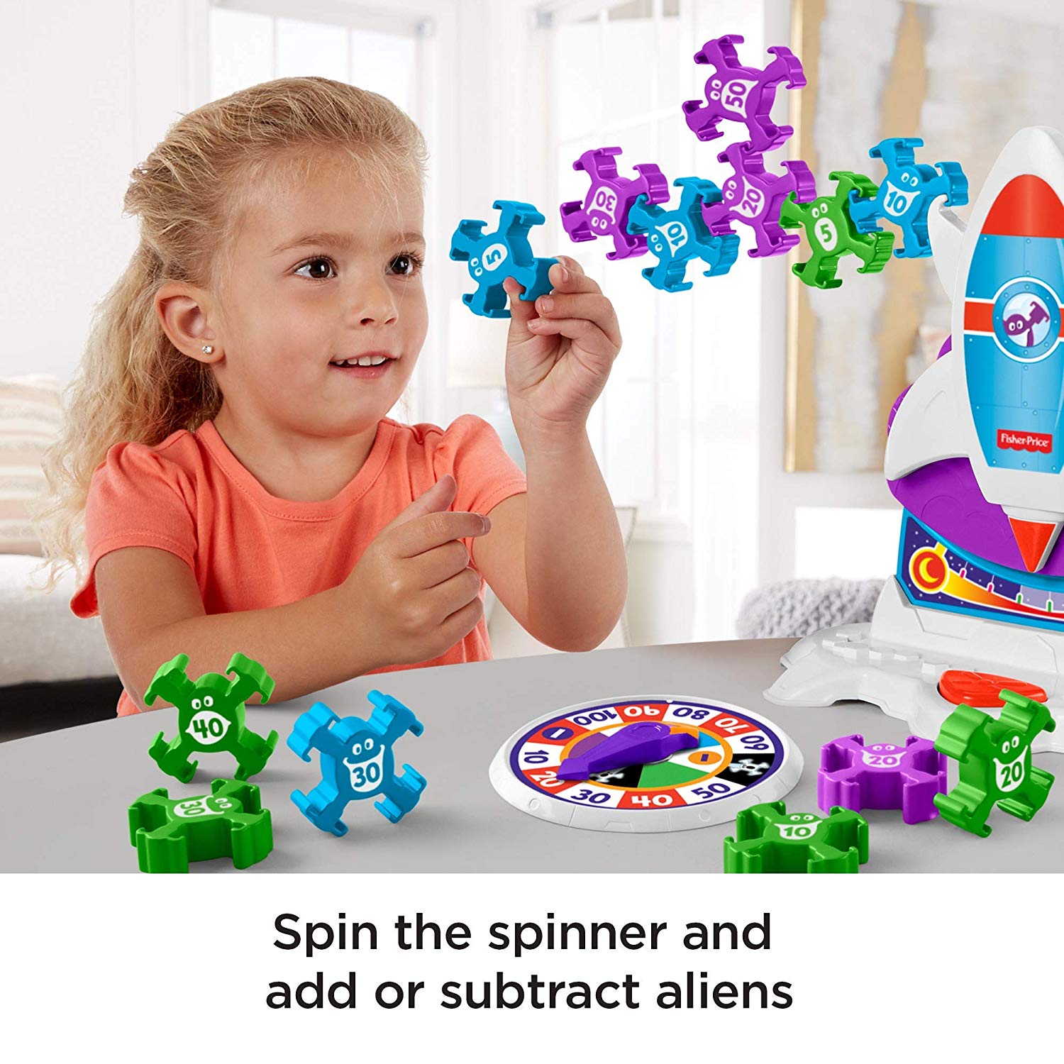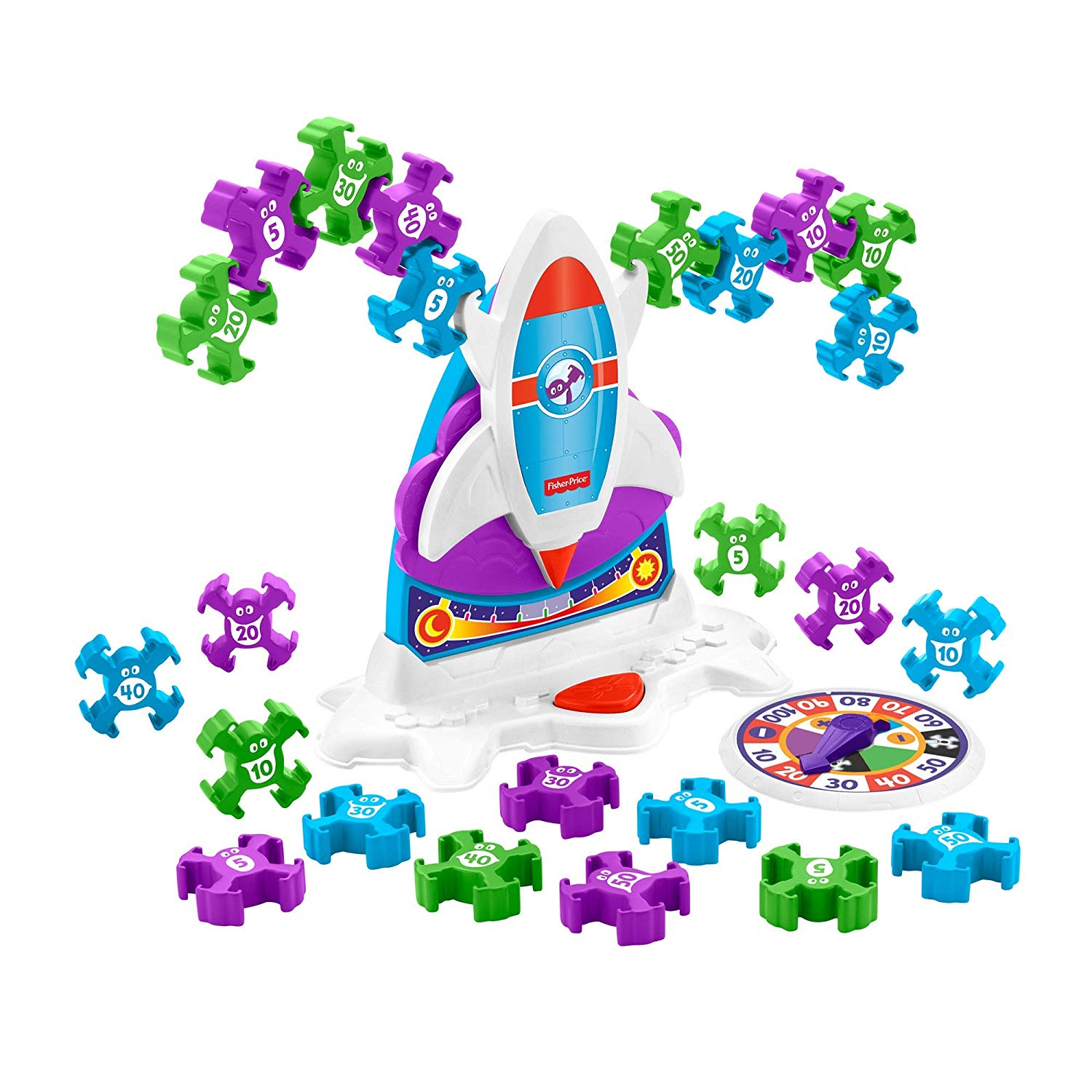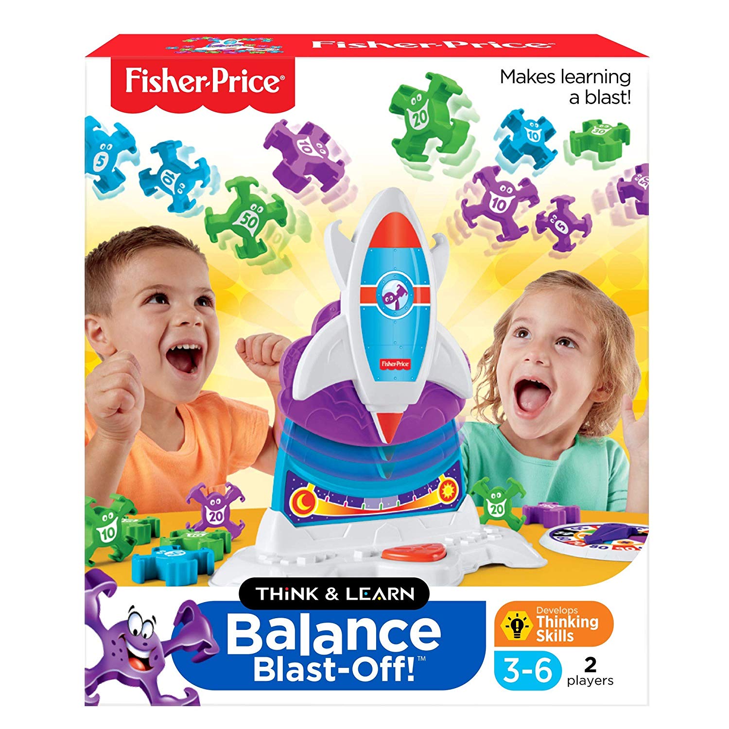 In Think & Learn Balance Blast Off!, kids add and subtract different coloured alien pieces to tip the rocket ship and blast off for the win. With two ways to play, three different colours, and 24 linkable “aliens,” this exciting balance game makes learning a blast! Inspiring little learners to be big thinkers Creativity & Imagination: Connecting the aliens to build unique structures and tip the ship helps get kids’ creative building juices flowing! Thinking Skills: Kids can exercise their problem-solving skills as they figure out the best way to tip the ship and blast off for the win! Math Concepts: Preschoolers can put their skip-counting skills to fun use as they collect the aliens they need to match the number on the spinner and add the aliens to their side of the ship.