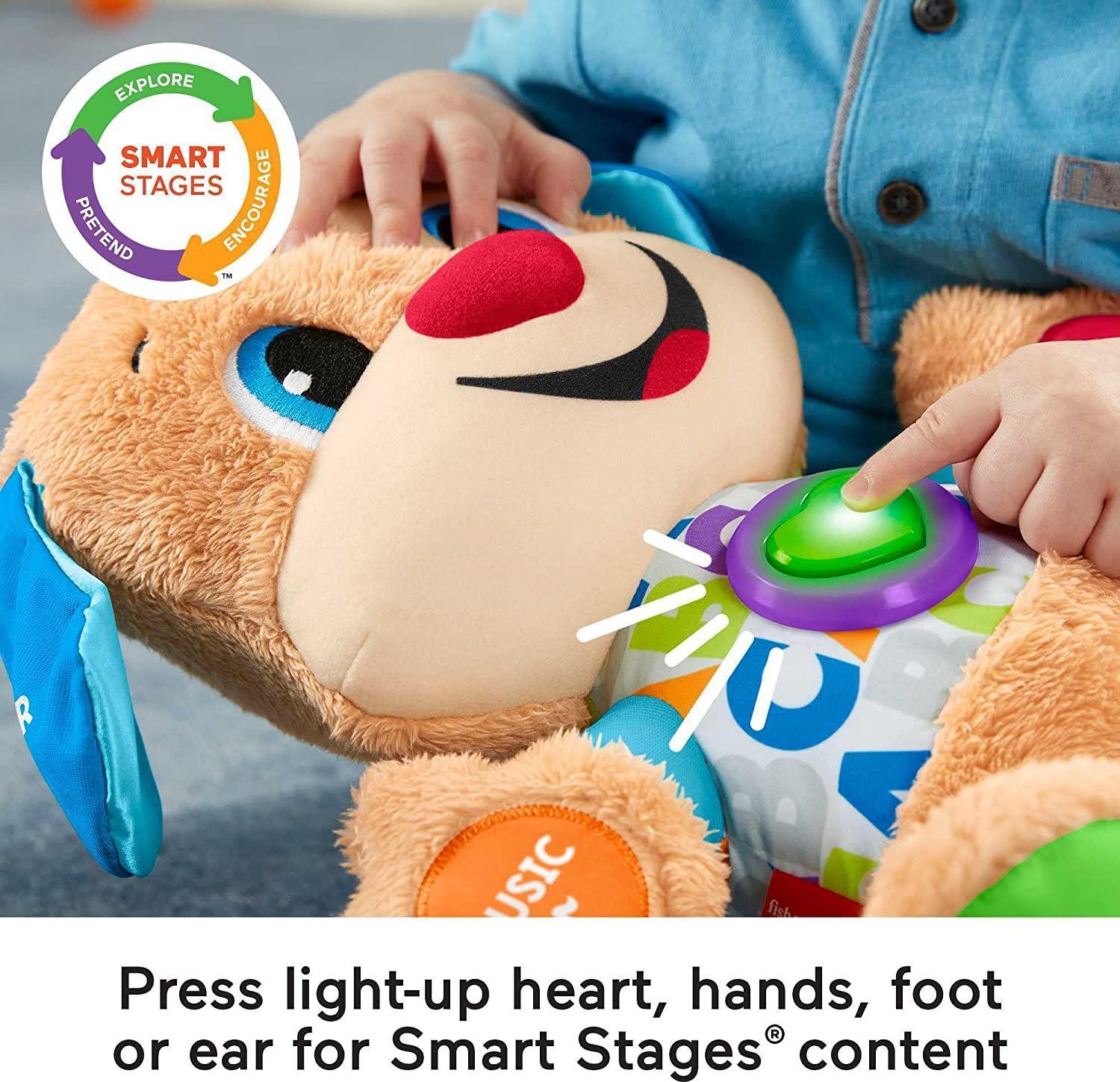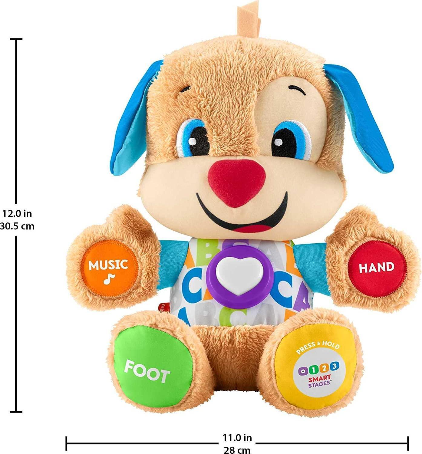 Puppy has 3 Smart Stages levels, each designed to teach your baby new things as they grow. And when you press and hold his light-up heart, Puppy will sing all of his favorite songs.
