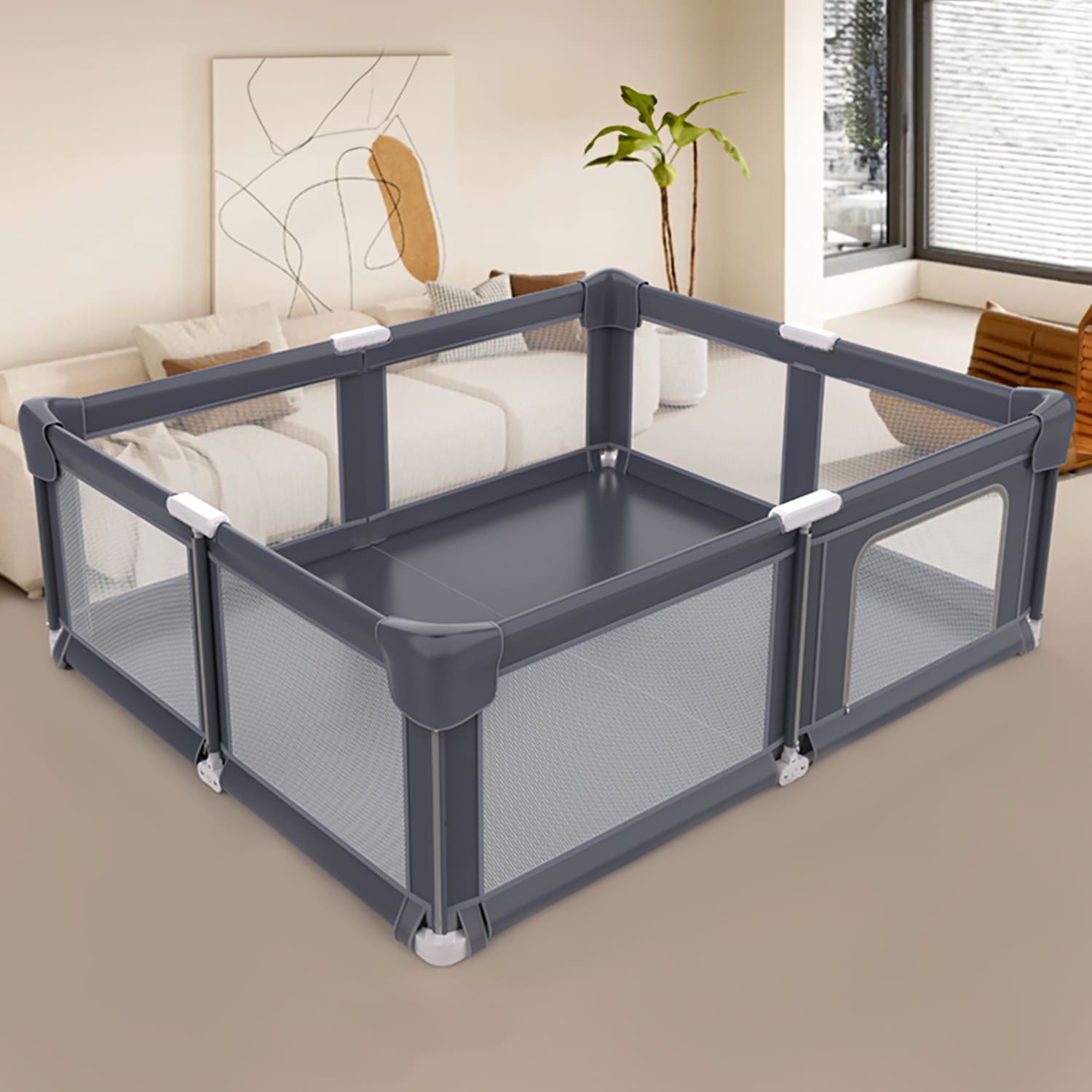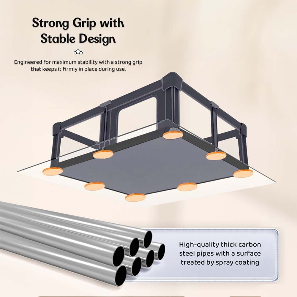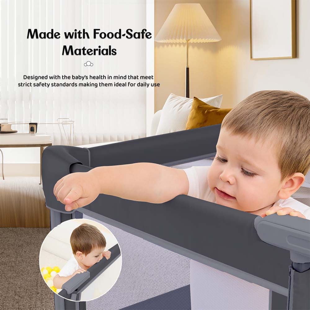 Strong, Anti-Slip Grip for Stability and Safety: The playpen’s strong grip base allows it to keep securely in place on a variety of surfaces, including hardwood, tile, and grass. This anti-slip function ensures that the playpen does not shift or slide even while your baby is actively moving or crawling around, giving parents extra piece of mind.