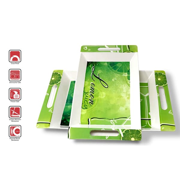 Fade-Resistant Glazed Finish – melamine trays have a porcelain-like finish that is fade-resistant.