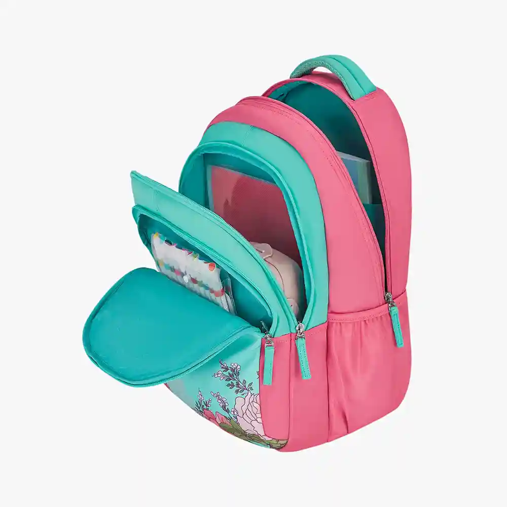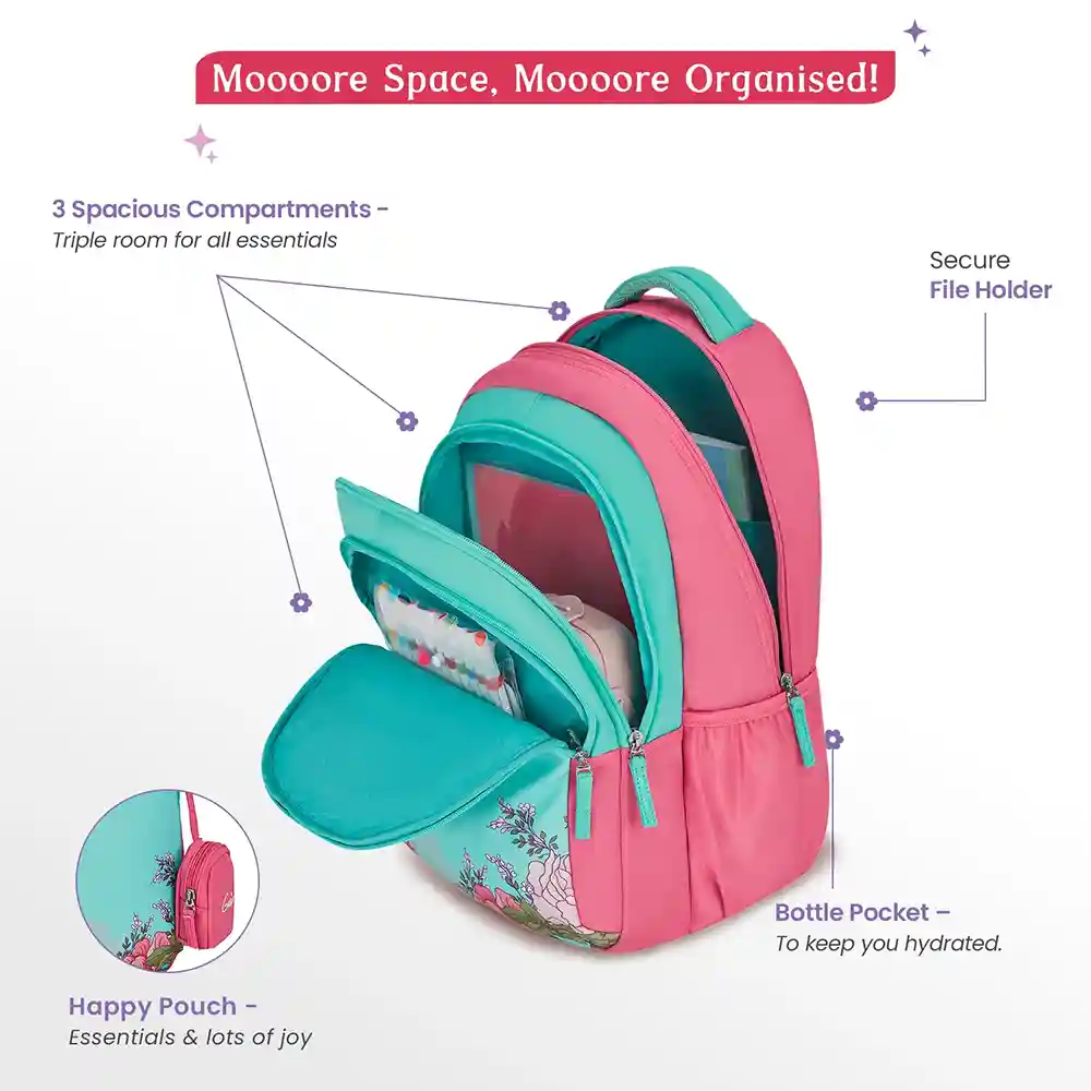 Three Compartment Layout: The kids school bag provides ample storage with multiple compartments, such as mesh water bottle pockets and front pockets for easy access. Keep organized with separate sections for your must-haves, tech essentials, and personal belongings.